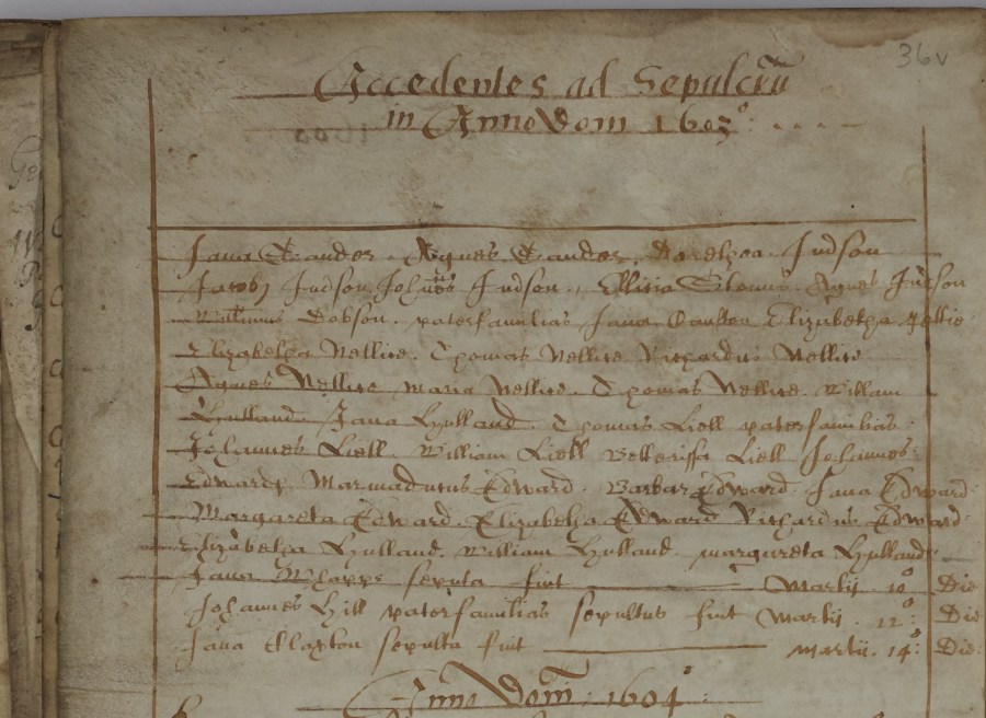 Burial registers contain records of many tragic events, such as in Hinderwell where the mass burial of 48 persons who died of the plague (pestilentiam) at Runswick between 1st September and 10th November 1603 is recorded.