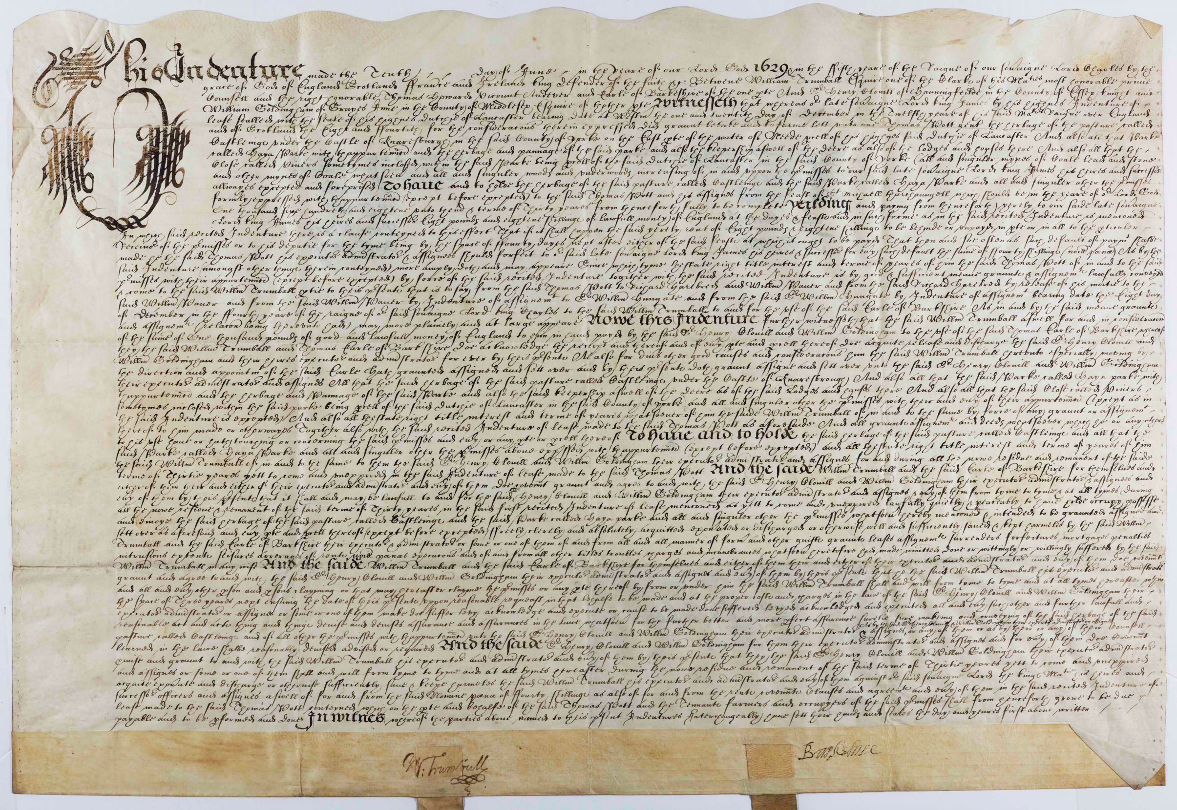 The example above shows a deed relating to herbage of pasture called Castle Ings, under the castle of Knaresborough, 1629. The lands of The Lady Hewley Charity in Haya Park and Knaresborough were devised to trustees to provide money for ‘poor and godly preachers’ or their widows, and for educating young men for the ministry, with the surplus to relieve ‘godly persons in distress’.