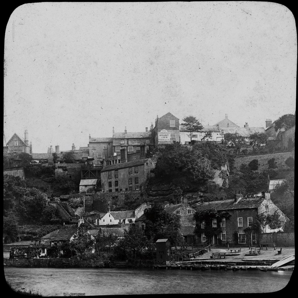 Our photographic deposits contain a variety of images relating to Knaresborough, and include a collection of around 100 glass plate negatives from a photographer’s shop (not named) located on Cheapside (ref: EF 491). The negatives have no attached information, though appear to be early 20th century in date, and include these marvellous riverside views of the town.
