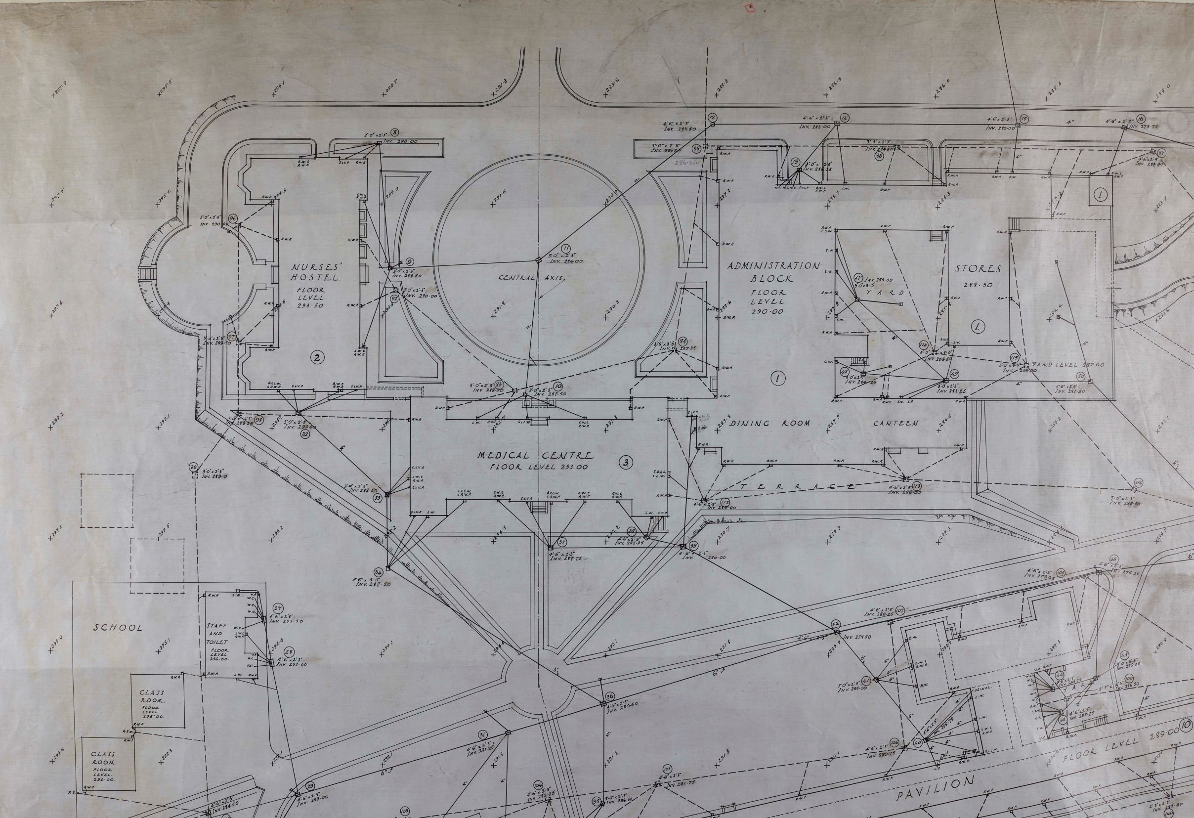 The plans show the administrative areas of the hospital – such as the nurses home, kitchen, laundry and offices – in the north part of the buildings, with the 4 large wards for patients being situated on the sun-catching south side. It became an NHS hospital in 1948, and was demolished in the 1990s to make way for a housing development.