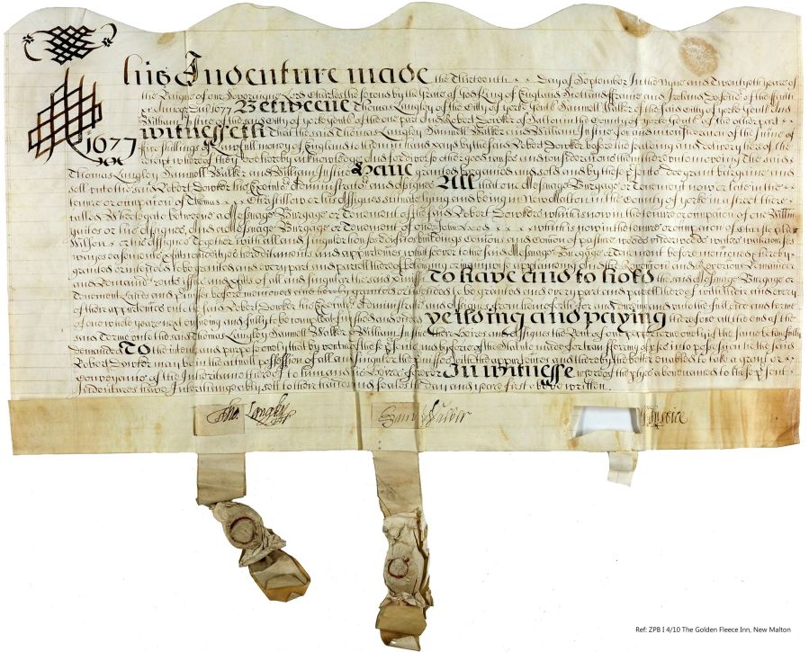 Spanning the period covered by this collection, there are title deeds for properties bought and sold, and a wealth of other papers, bills and correspondence relating to the running of the Estate and changes in tenancies. The majority of this material dates from the 18th and 19th centuries, after the initial purchase of land and property in Malton made by Thomas Wentworth in 1713.