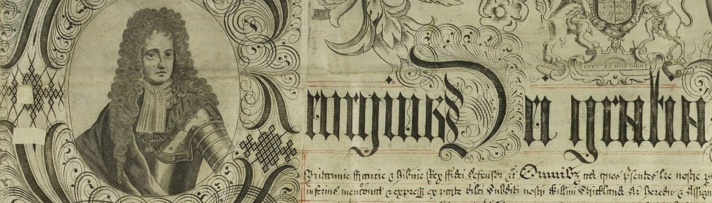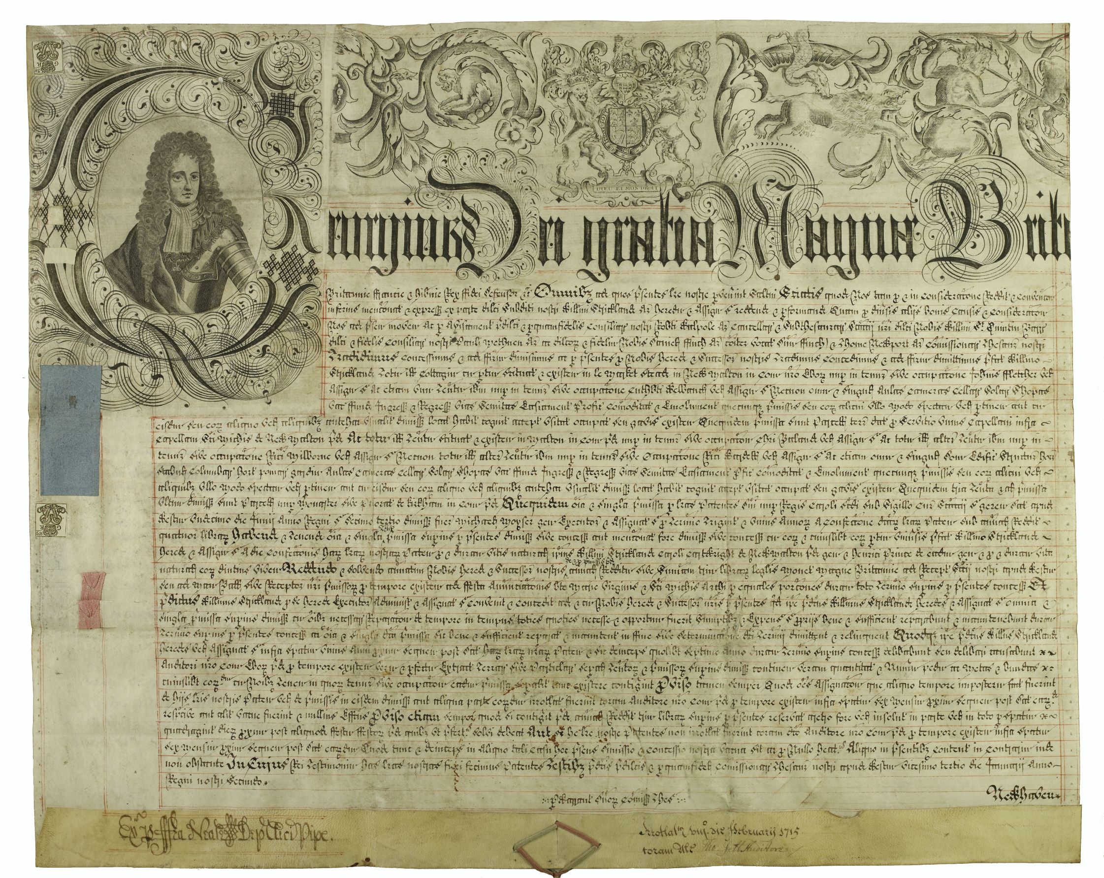 Right : ZPB 1 7/14 Lease of 1715, with an engraving of King George I