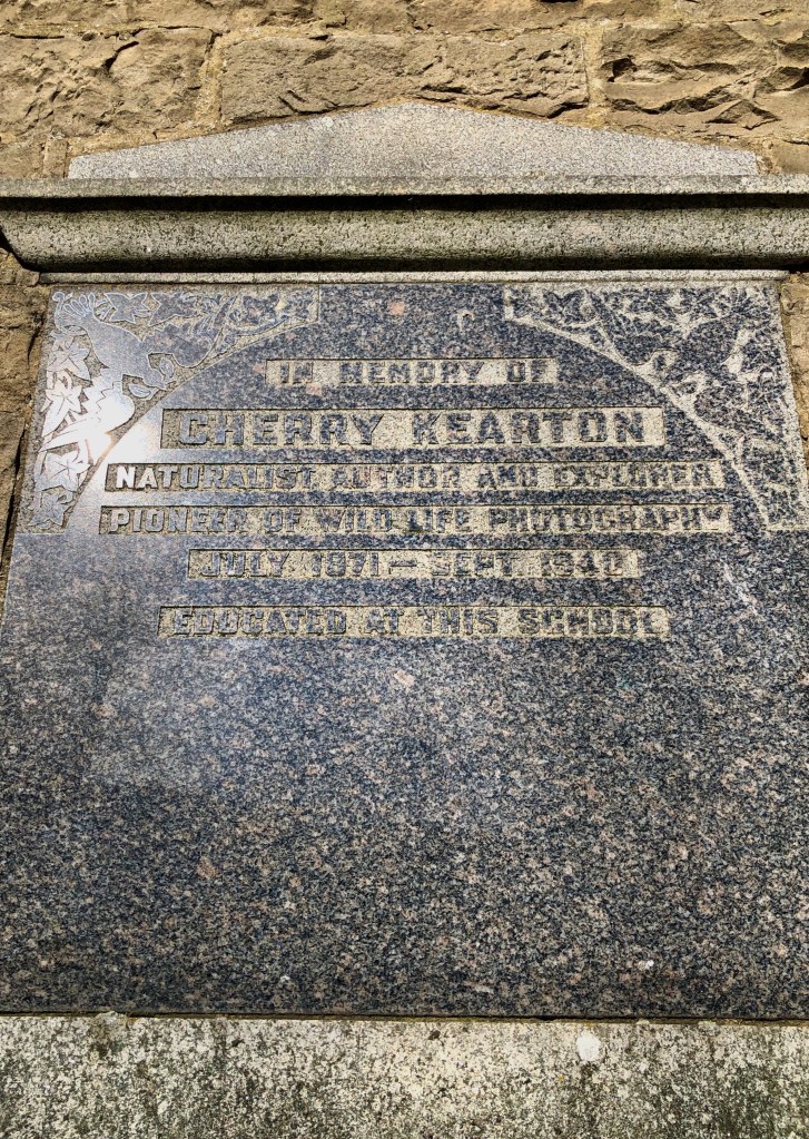 ‘In memory of Cherry Kearton naturalist, author and explorer. Pioneer of wildlife photography July 1871- Sept 1940. Educated at this school’.