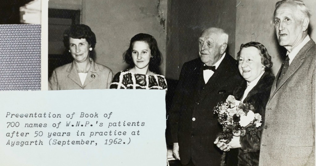 The photograph below taken in September 1962, shows the Pickles family celebrating Dr Pickles’ 50th year in practice in Aysgarth.