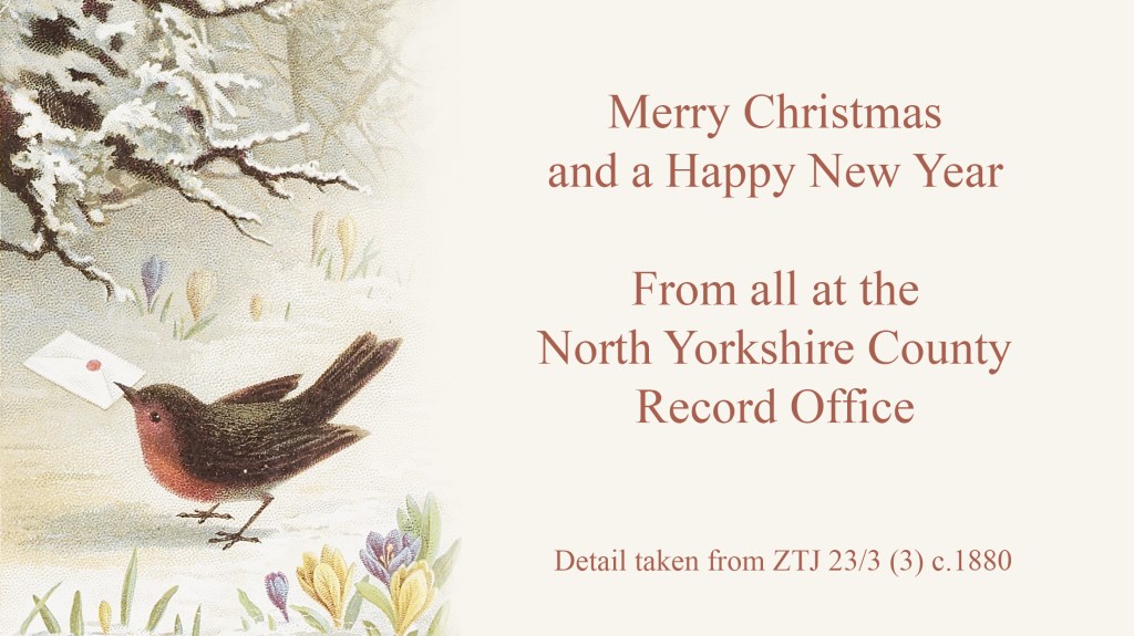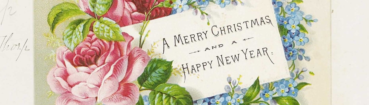 A late 19th century scrapbook relating to the Peckitt family, in the Pickard Peckitt collection (ZTJ), contains a small number of Christmas and New Year cards. Spring flowers predominate in these colourful examples.