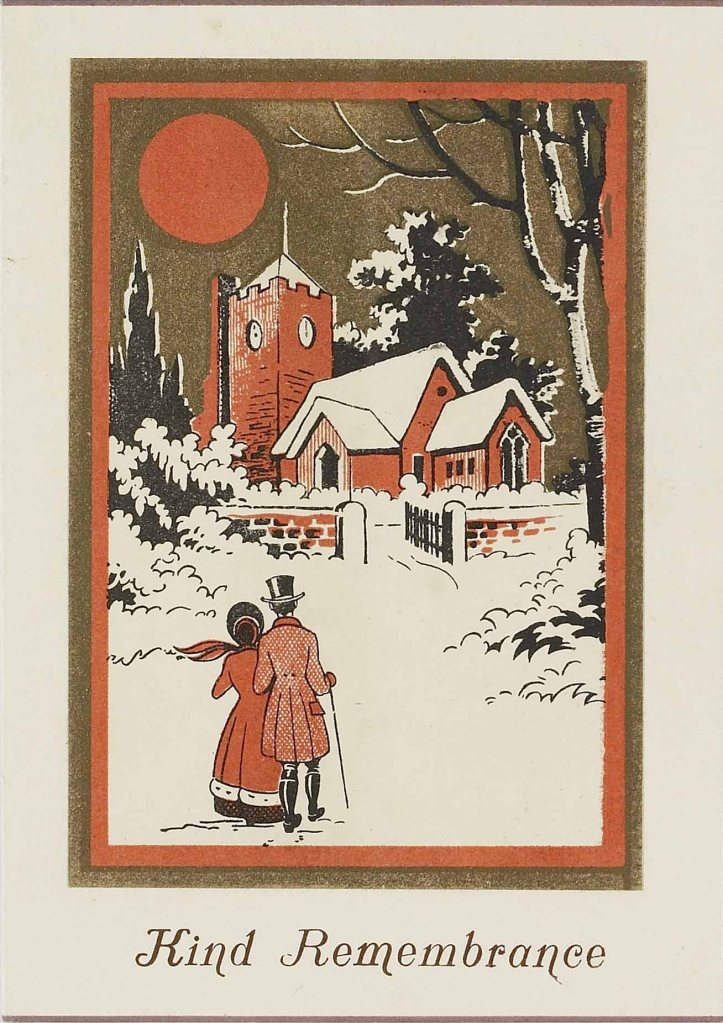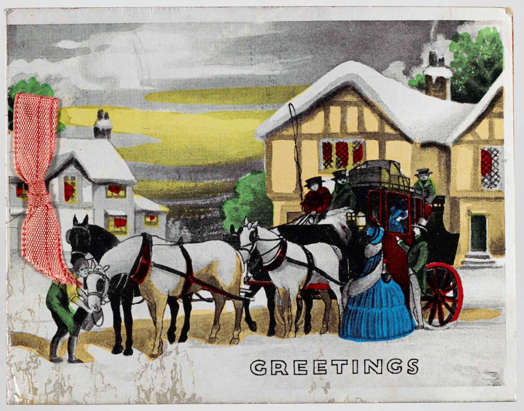 Christmas cards sometimes indicate the place from which they are being sent, like this jaunty example featuring North Yorkshire’s county town, Northallerton. Bestowing good luck and seasonal wishes, it is hand-dated 1935.