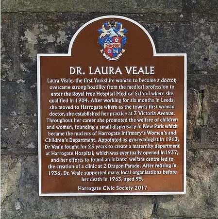 In 2017, in order to remember the invaluable work of Dr Laura Veale to her local community, Harrogate Civic Society installed a plaque at the site of her surgery at 3 Victoria Avenue, Harrogate. The purpose of a Harrogate Civic Society plaque is to honour the individual concerned and to make more widely known their contribution to the town. According to Dr Paul Jennings, member of Harrogate Civic Society, it was Dr Laura Veale’s incredible contribution to both medicine and feminism, which made her an ideal candidate for a plaque.