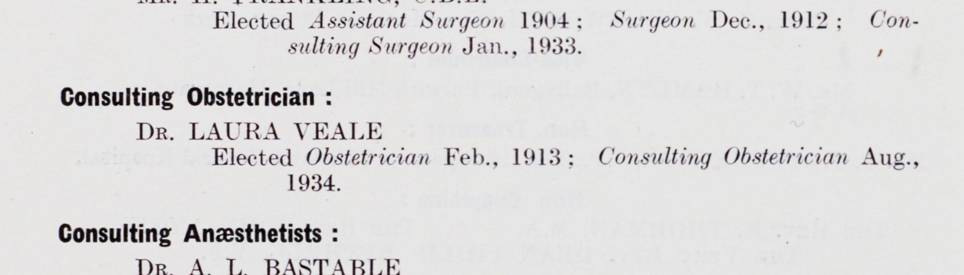 Dr Laura Veale was passionate about improving medical care for women and children, including for those from more deprived parts of Yorkshire. This included establishing a dispensary in New Park, Harrogate, which became the basis of Harrogate Infirmary’s Women’s and Children’s department. Whilst working as an obstetrician at Harrogate Infirmary, Dr Laura Veale fought for over twenty-five years to establish a maternity department at the hospital. She finally achieved her goal in 1937, when a maternity department was unveiled at the hospital.