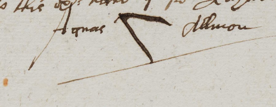 Not surprisingly, the parties involved in business contracts signed and sealed agreements in the presence of a pair of witnesses. From the Richmond District Council collection (DC/RMB), the articles of agreement shown below are a contract established between John Bincks, representative of the town and Borough of Richmond, and Thomas Wood, of Thirsk, bell-founder. Dated 18 July 1665, Thomas Wood agrees to cast two new bells, tuning them to suit the existing three in the parish church, then hang them and keep in good repair for one year. Signing and sealing the agreement, Thomas Wood’s mark is his initials, ‘TW’.