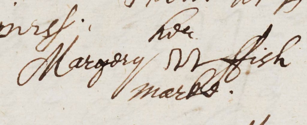 In another court case relating to illegitimacy, Margarett Merryall (1640) confesses to bearing the illegitimate child of Thomas Wright, an anchor-smith. She signs with a ‘U’ shaped mark. Margarett’s claim she was subject to Thomas’s “lewd and wicked manner” does not prevent her receiving the severe punishment of public whipping.