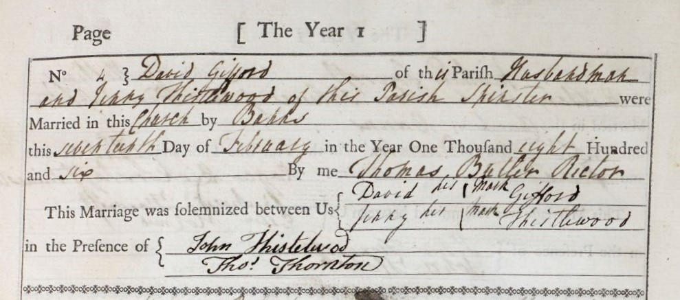 The cross/X mark generally predominates in marriage registers. This might relate to the possibility that illiterate signatories, especially those uncertain about how to sign, were instructed to perform a certain symbol by the parish clerk – resulting in many identical or repetitive marks. In the Bentham marriage register, we find a mixture of crosses and simple, single pen strokes as marks: