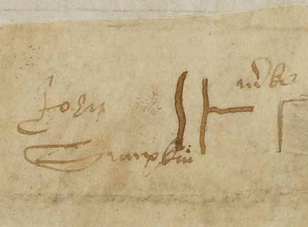 Z.1506 4/4 Pickering demise – Agnes & Christopher Allen to John Sympkin, showing detail of John’s mark, 8 May 1613