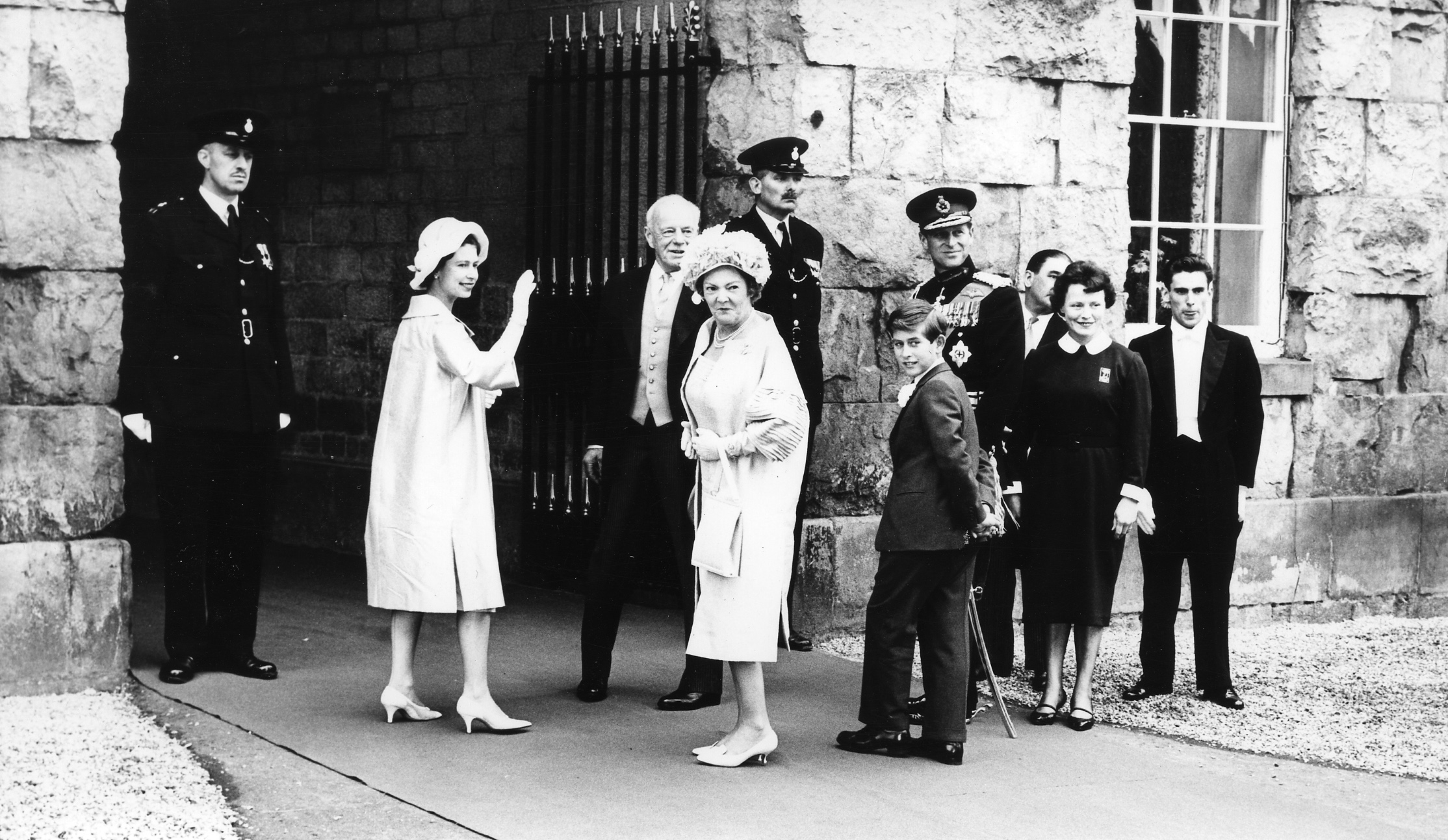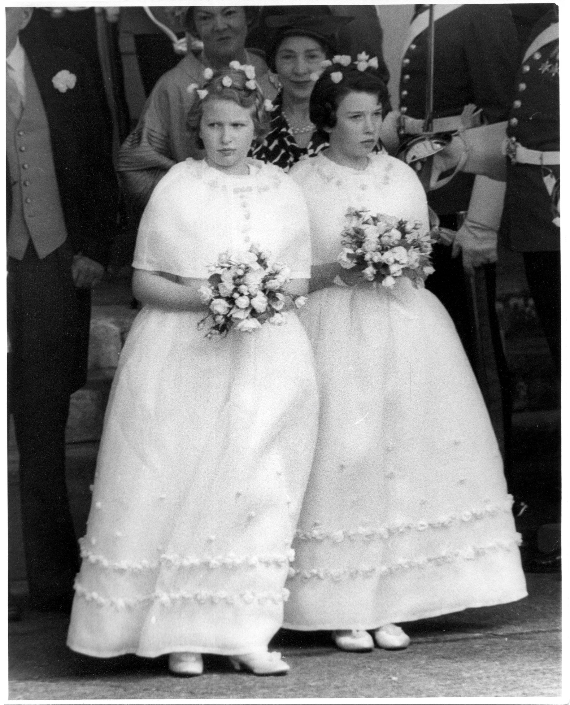 EF 402 The bridesmaids – Princess Anne on the left, Queen Elizabeth and the Queen Mother