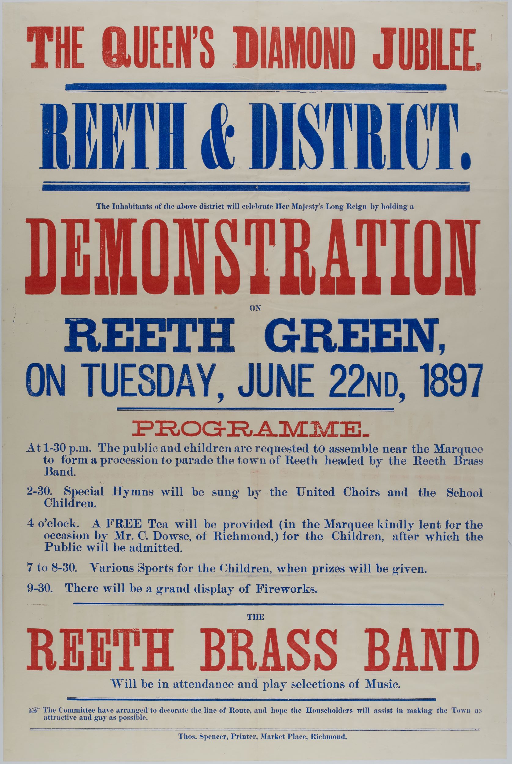 ZLB 32/11/3/1 Reeth & District poster for The Queen’s Diamond Jubilee; PH018-25 Procession in Harrogate for Queen Victoria’s Diamond Jubilee