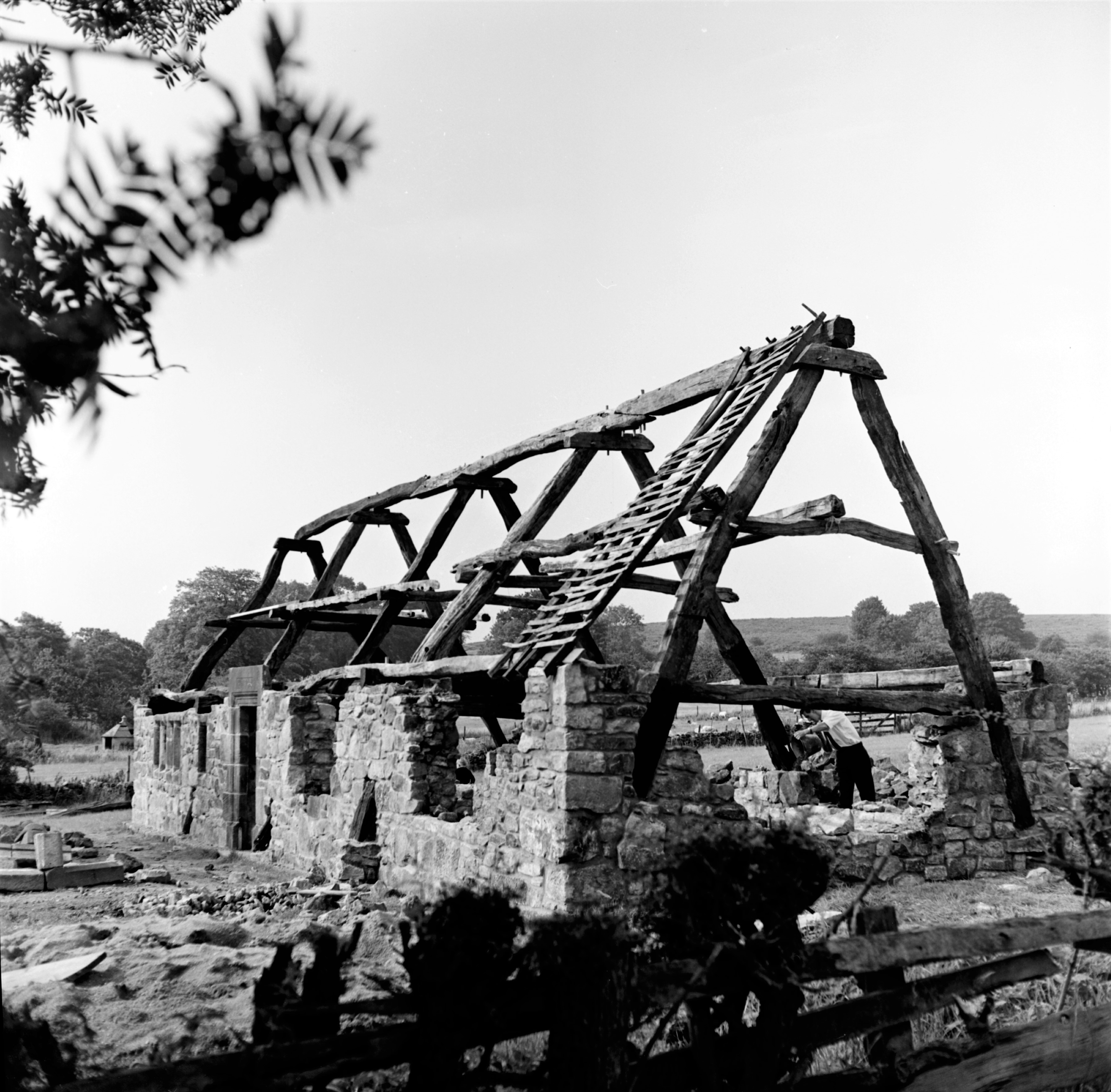 - Left: BU02680A The remains of the cruck frame of Harome Hall being reconstructed in Hutton-le-Hole