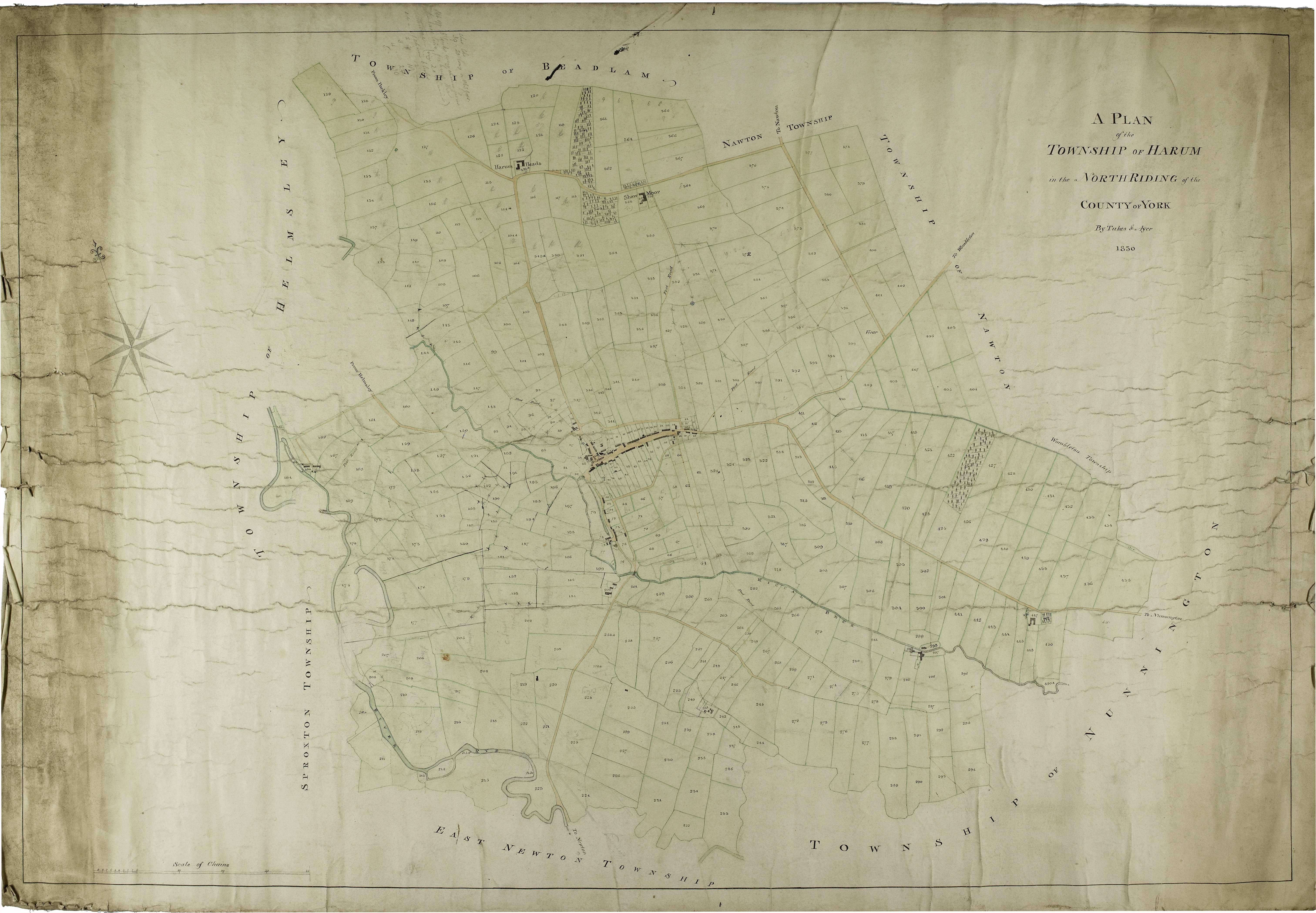 The township of Harome has an interesting agricultural history, which can be traced through a fine collection of historic maps dating back to the 18th century from the Feversham/Duncombe of Duncombe Park, Helmsley Records [ZEW]. The history of the open-field system and later enclosure can be further explored through a pains book of the manor court, the enclosure award and plan, tithe apportionment and plan, as well as historic aerial photographs, listed building and archaeological records.