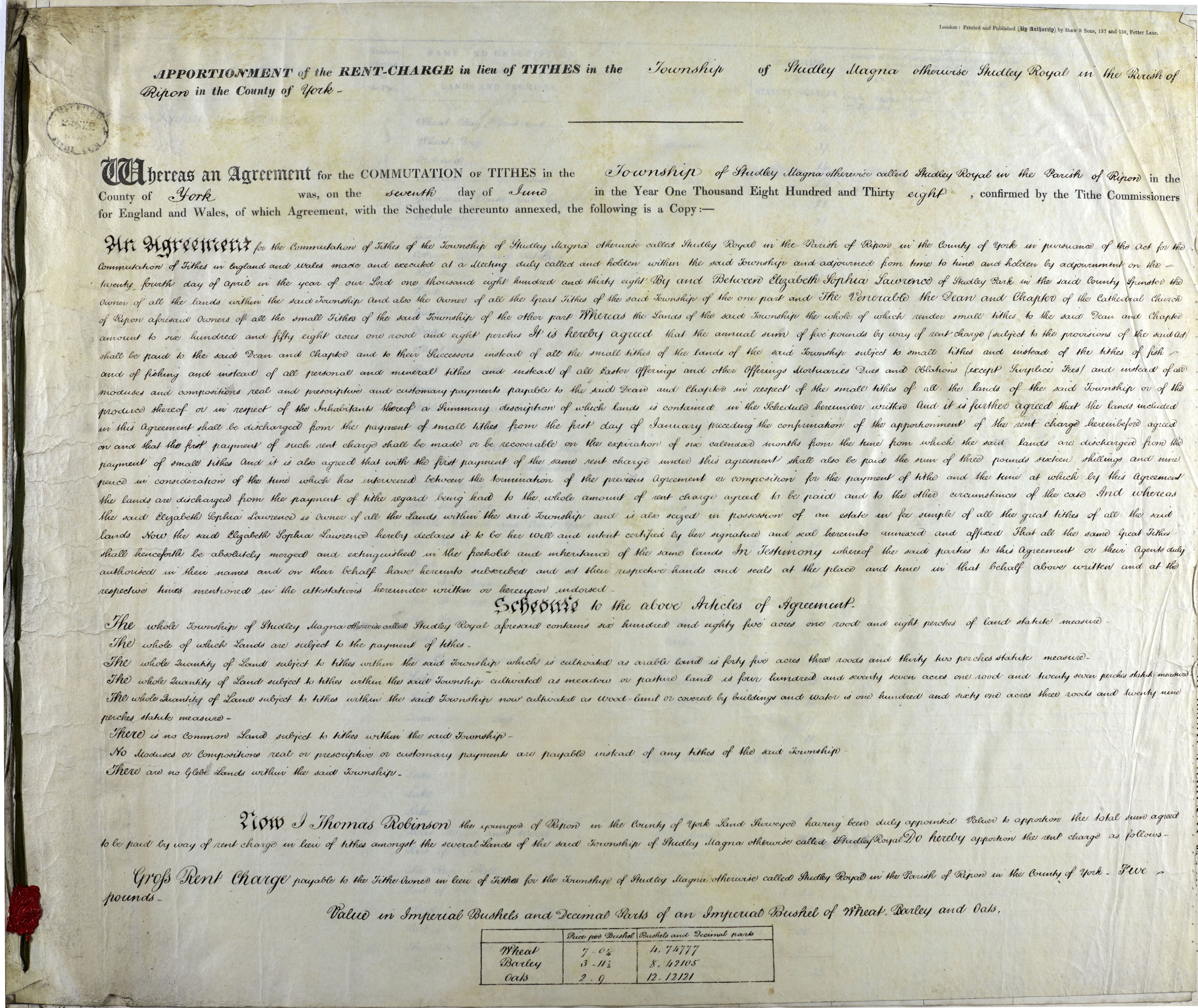 T/SRY Studley Royal tithe map and apportionment, 1838