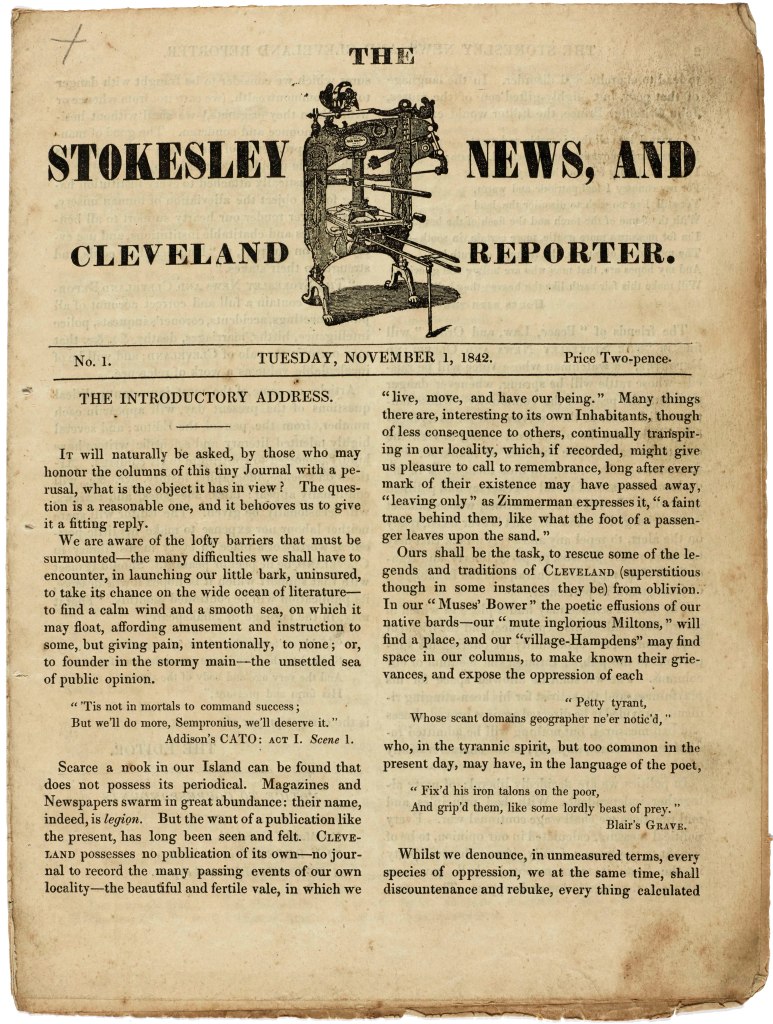 ‘The Stokesley News and Cleveland Reporter’ (1842-1844) and ‘The Cleveland Repertory and Stokesley Advertiser’ (1843-1845)
