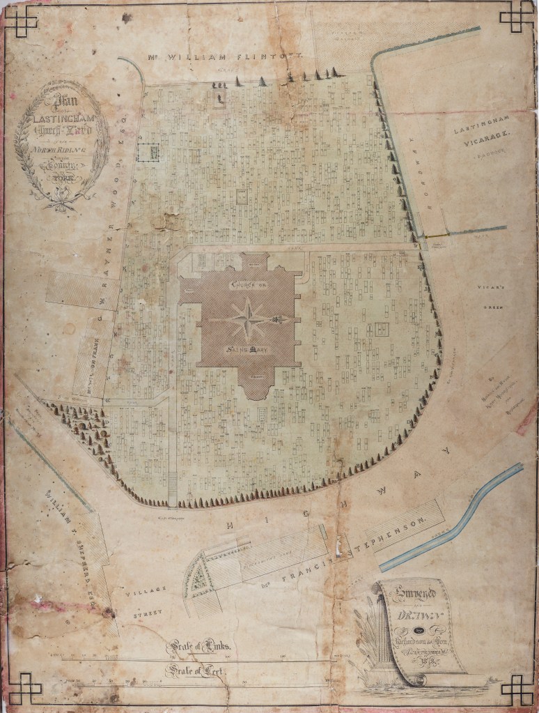 Plan of Lastingham churchyard surveyed by Richardson & Son, 1878