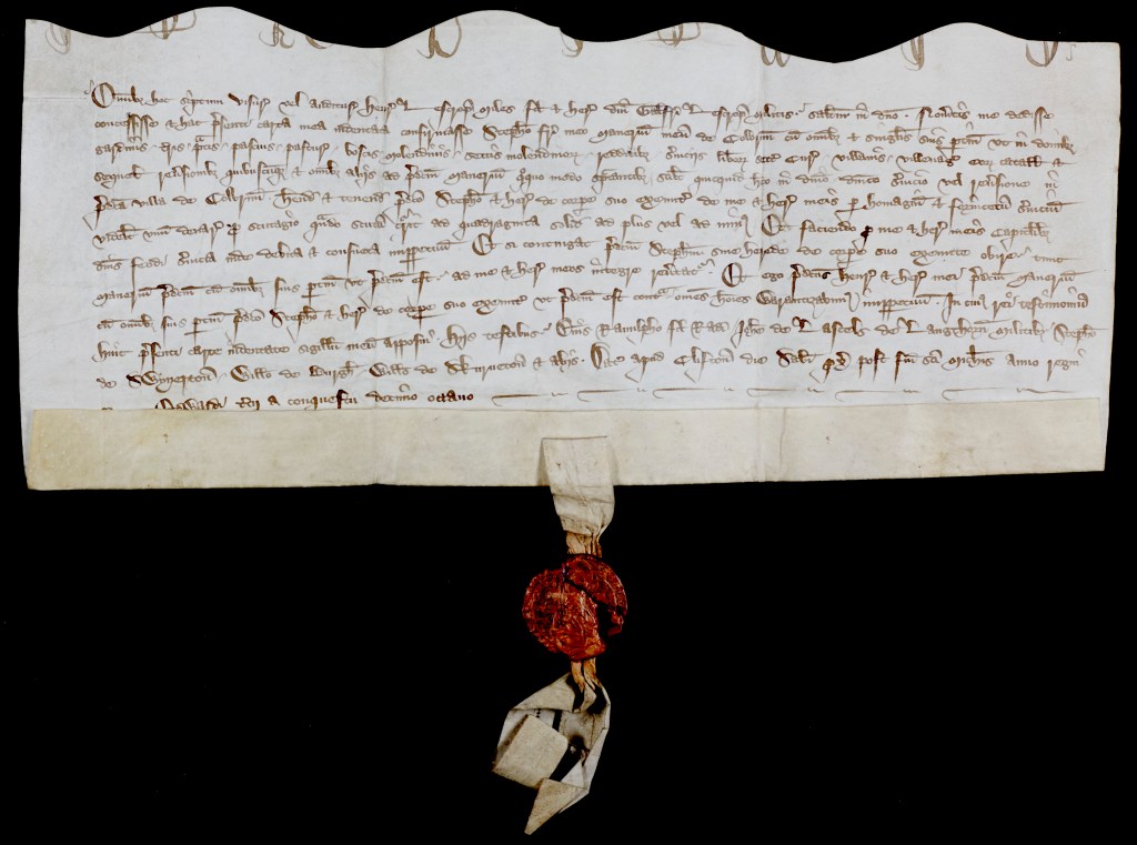 This parchment indenture, with the pendant seal of Henry le Scrope, is our oldest recent deposit at nearly 680 years old.
