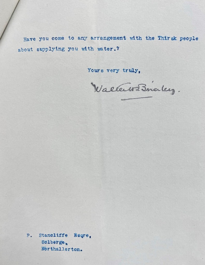 From a letter written prior to the auction, dated 18 October 1911, from Stancliffe’s agent Coverdale to Mr Peirson, the estate agent for the sale, we learn that there was no drinking water in the old house. Water had to be brought from a well in the garden, which could be pumped dry in 20 minutes and was deemed “quite insufficient” (the issue of obtaining a mains water supply to the house is one that took Stancliffe several months to resolve). After visiting the property, Coverdale also concluded: