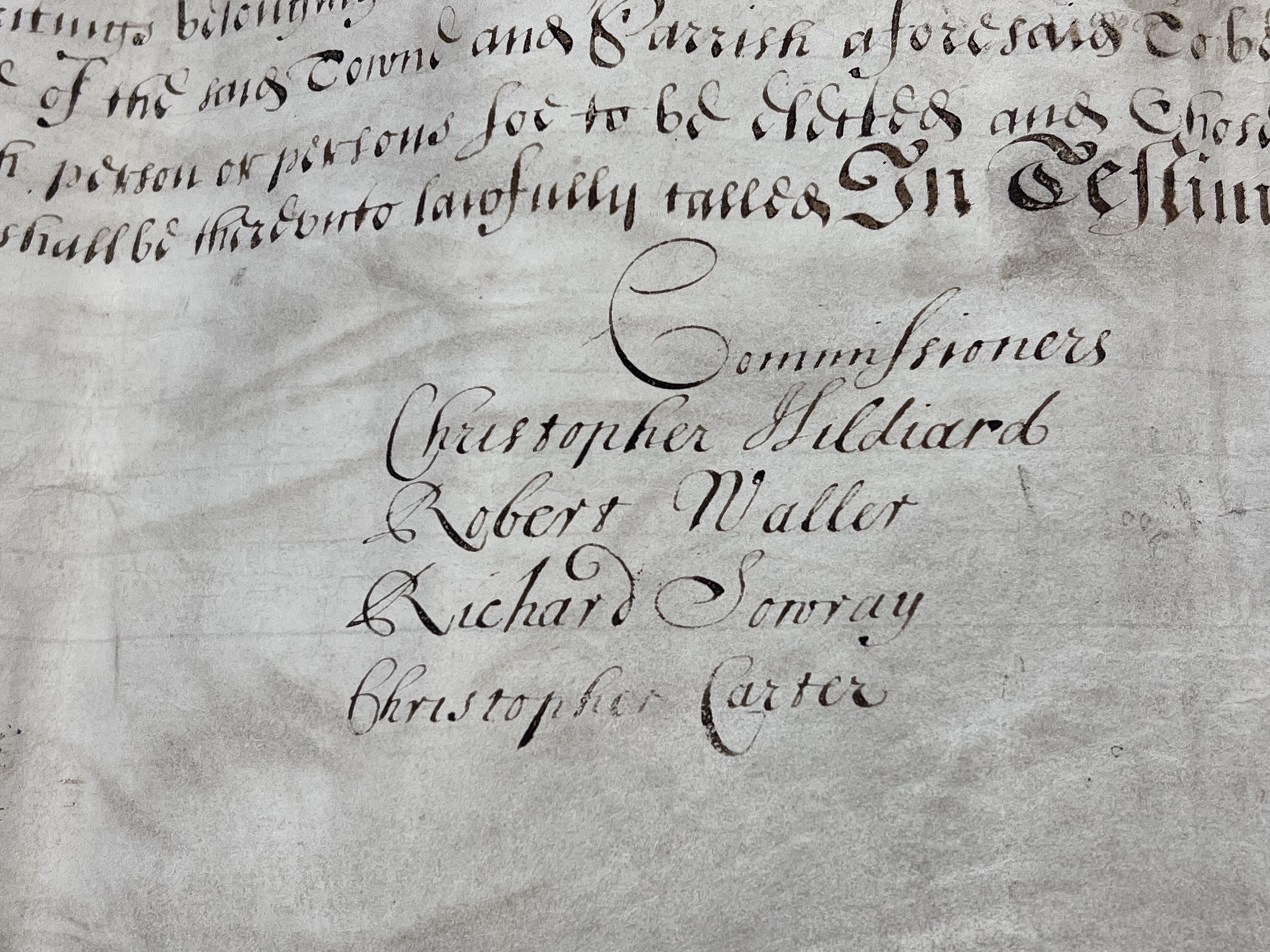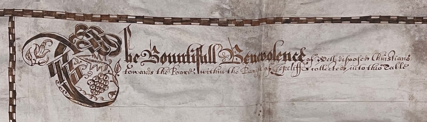 Topcliffe is also unusual in that many of the parish charities were overseen by a body of “feoffees” (PR/TOP 2/6; 4/4). By the late seventeenth century, several sums of money had been bequeathed to the use of the poor of the parish without the donors nominating trustees to oversee the money’s distribution. The task had therefore fallen, according to the Charity Commissioners Reports of 1837, to “some honest and able men who took upon them the order and disposition thereof“. A decree of the Commissioners of Charitable Uses in 1674 put this on a more permanent basis by appointing Sir Metcalfe Robinson, the then vicar of Topcliffe, and eleven others, trustees for the charities, with the power to elect a new trustee or feoffee when any should die. The feoffees were also responsible for electing the master of the Free Grammar School.