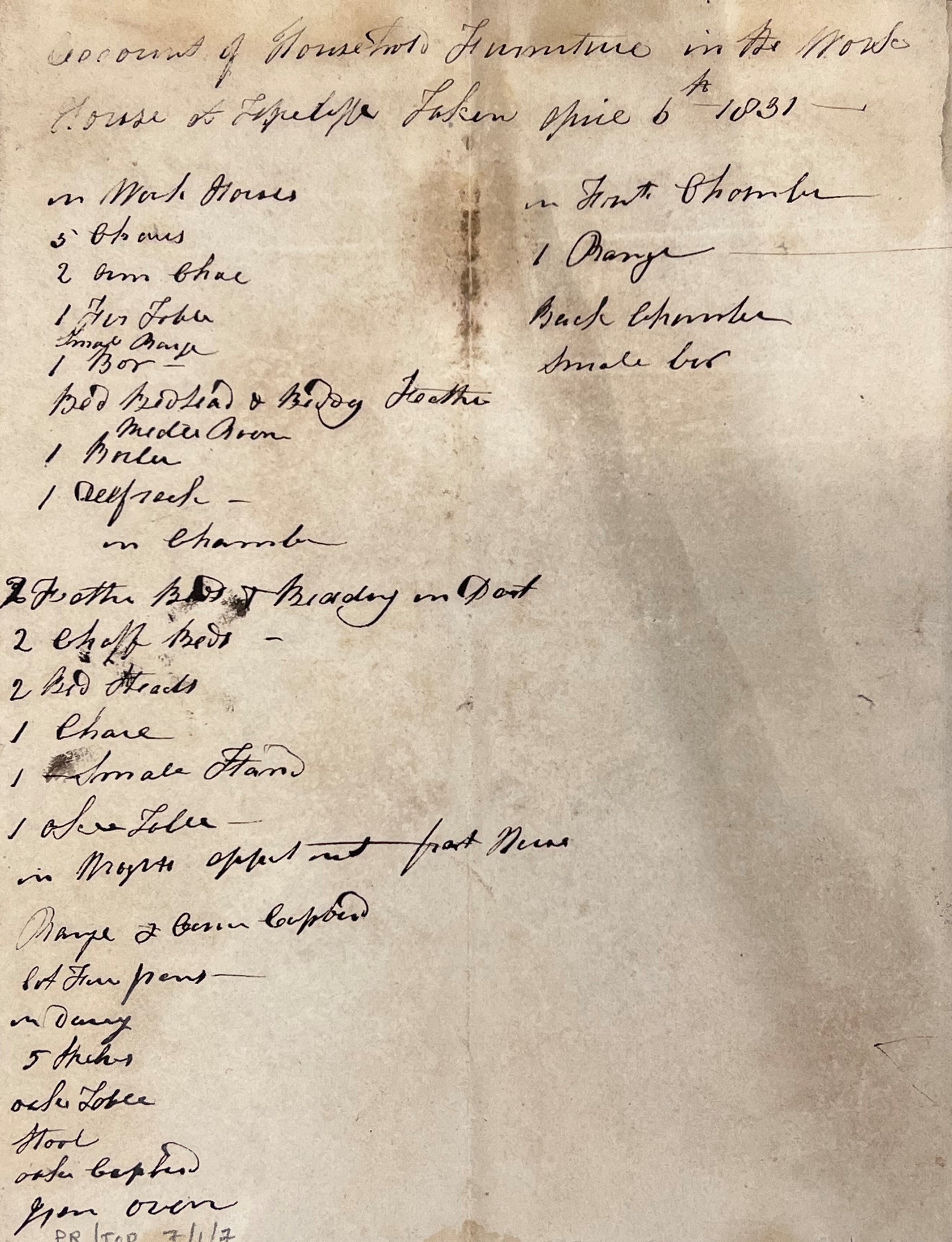 PR/TOP 7/1/7 Account of Household Furniture in the Work house at Topcliffe taken April 6th 1831