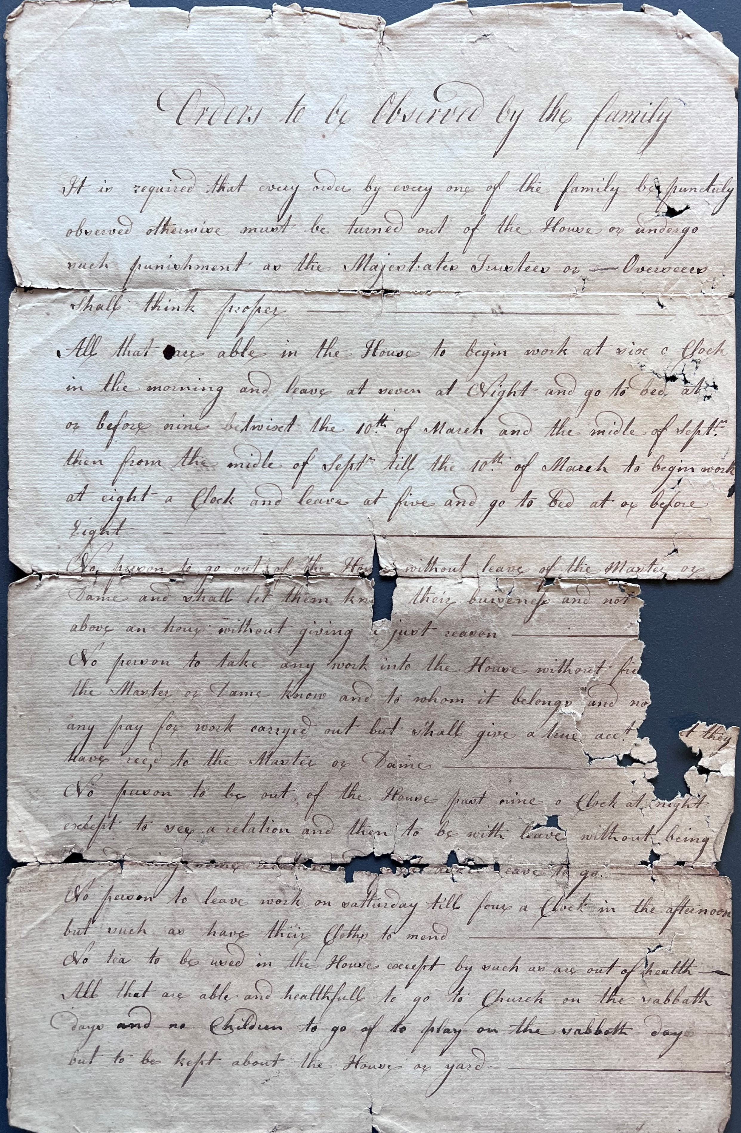 PR/TOP 7/10 Front and reverse of the rules of the workhouse, aka “Orders to be Observed by the Family”, undated