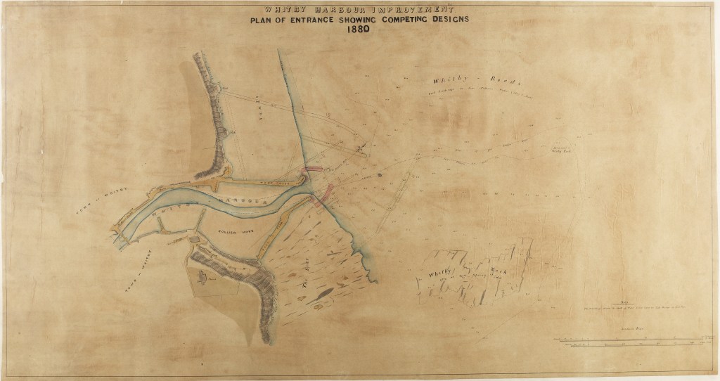 DC-WHU 123 Whitby harbour improvement plan of entrance showing competing designs, 1880