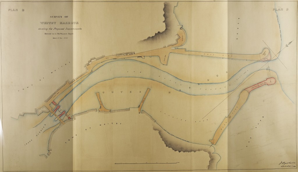 DC-WHU 122 Survey of Whitby harbour showing the proposed improvements referred to in Mr Walker’s report, Plan “B”, 4 January 1845