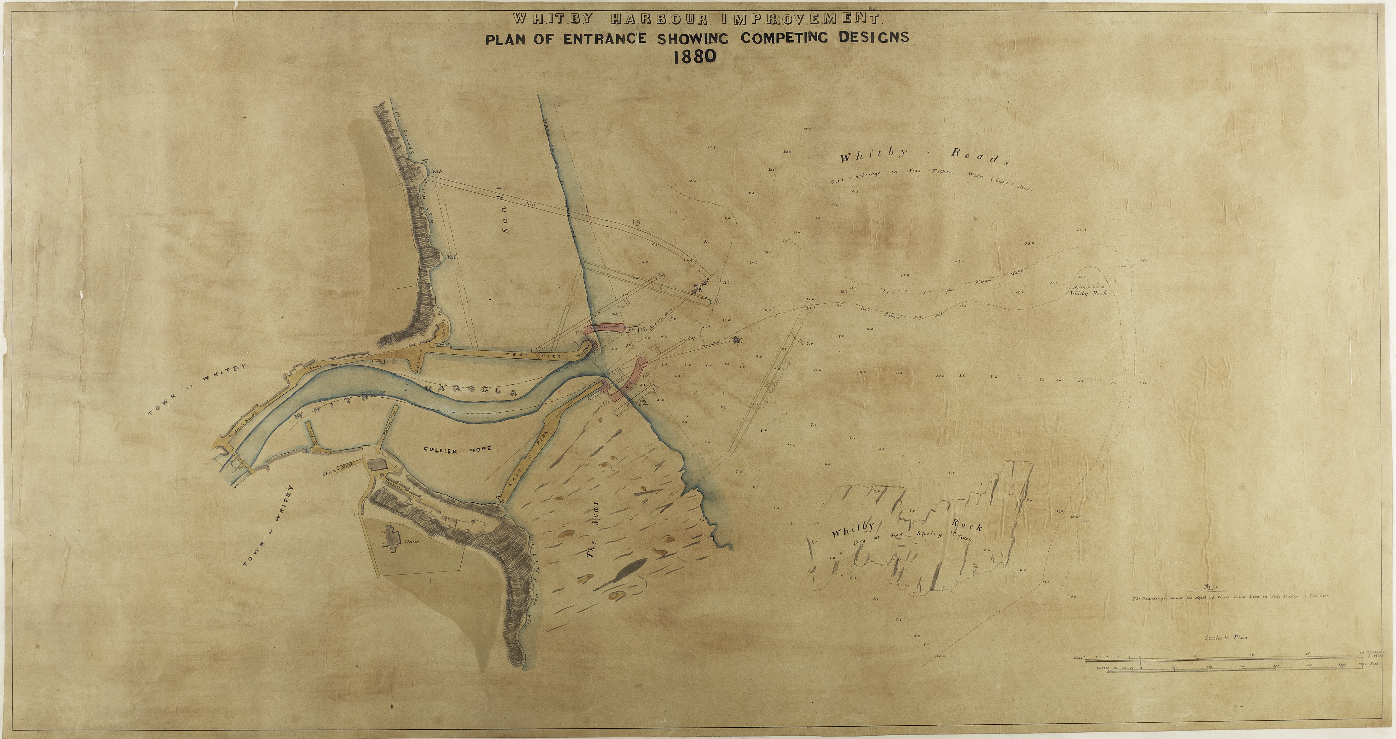 The records of Whitby piers and harbour in the collections of the Record Office include the minute books of the harbour trustees from 1781 to 1902 and reports on the harbour by J. Walker in 1845 and by J. Watt Sandeman in 1880 [DC/WHU]. There are also a number of plans of the harbour from the eighteenth to the twentieth century.