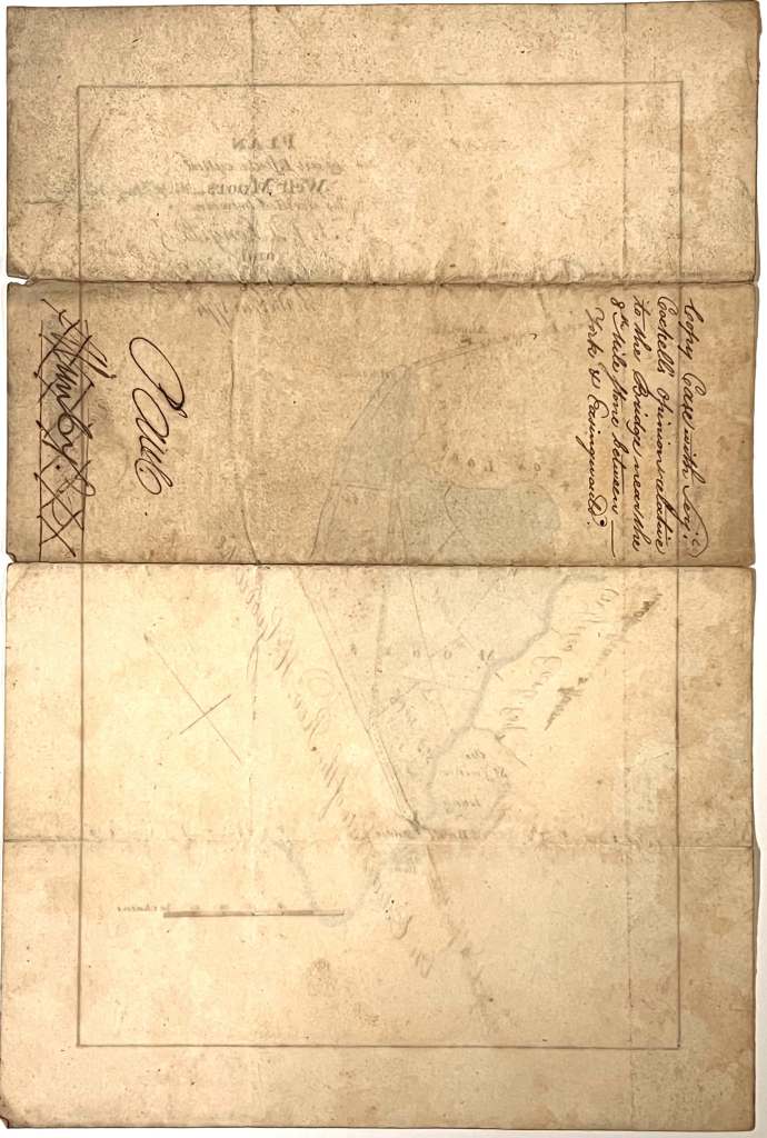 Front and reverse of ‘Plan of an estate called West Moors on the north side of the New Bridge as divided between Sir J.T. Long bt. and Giles Earle esq. in the year 1774’ [QAB(M)]