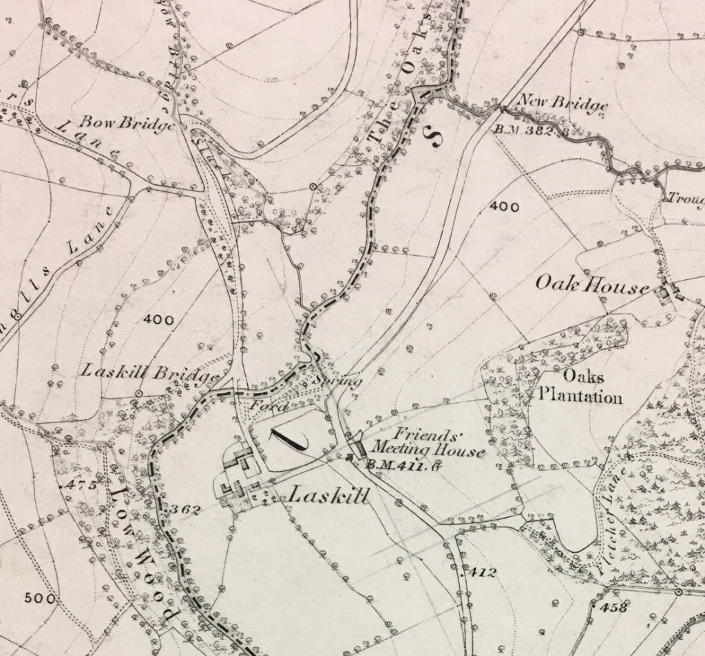 - Right: Friends Meeting House at Laskill, Ryedale. Ordnance Survey, Yorkshire Sheet 73, Six-inch to the mile, surveyed 1854, published 1857