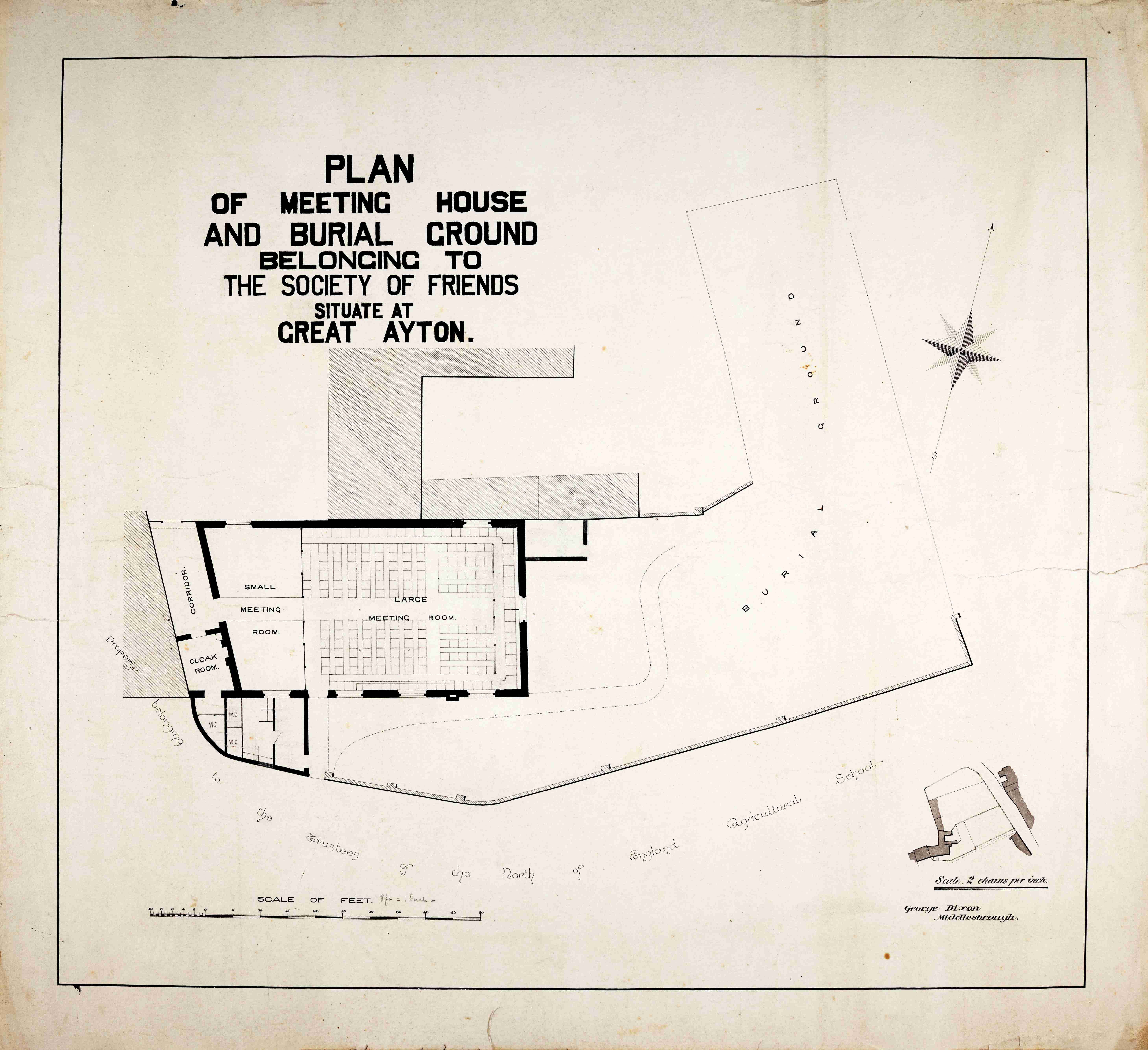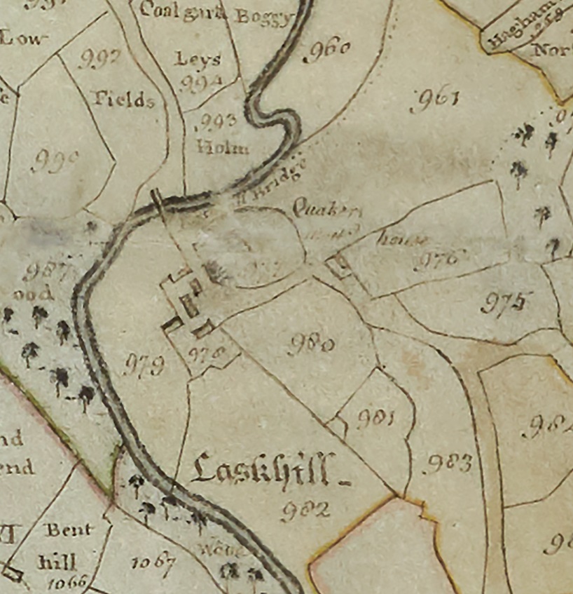 - Left: Quaker Meeting House at Laskill in Ryedale. Detail from a map in the archive of the Feversham/Duncombe family of Duncombe Park, Helmsley [ZEW(M)9]