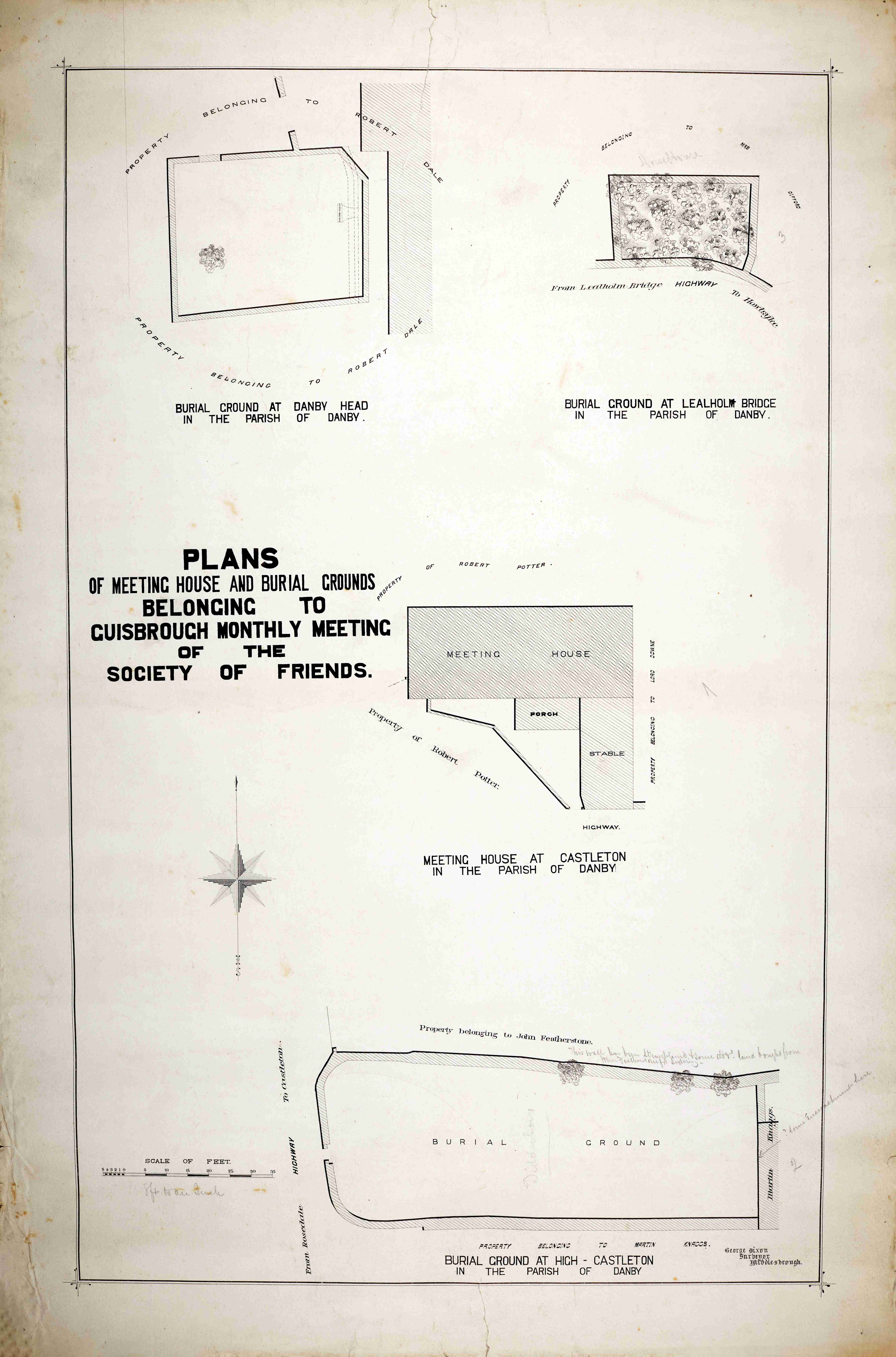 Documentation relating to Meeting Houses and burial grounds can be found within the Preparatory and Monthly Meeting records. Records include title deeds, valuations, details of trustees, and drawings and plans.