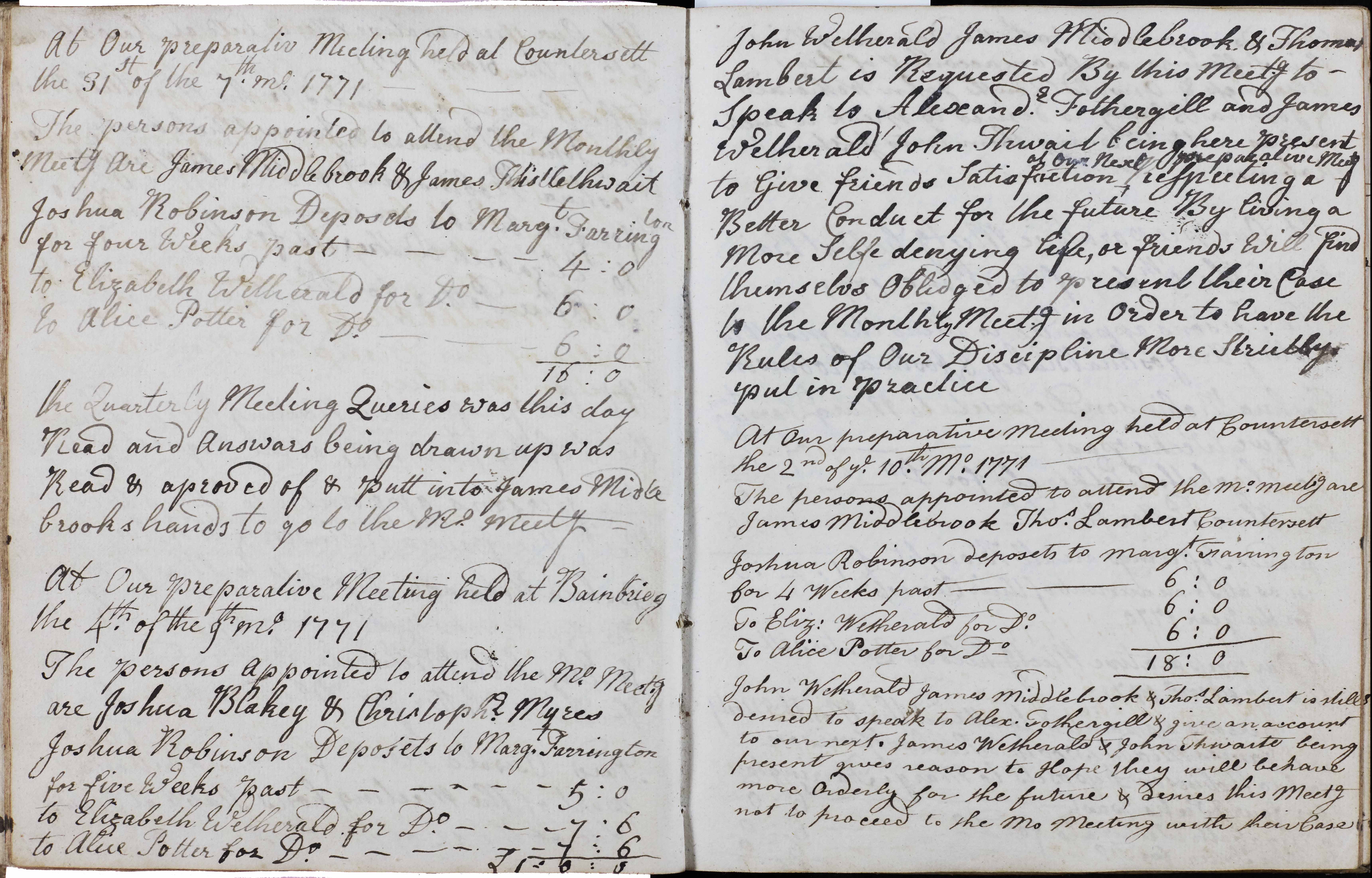 Minutes for the Preparative Meetings at Countersett and Bainbridge in September 1771 [R/Q/R 1/187]