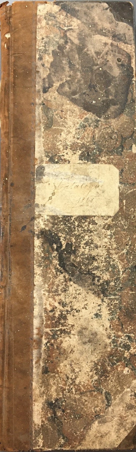 Bainbridge Preparatory Meeting Library catalogue and list of loans, 1862-1901, showing the outer cover, title page and catalogue contents [R/Q/R 14/1]