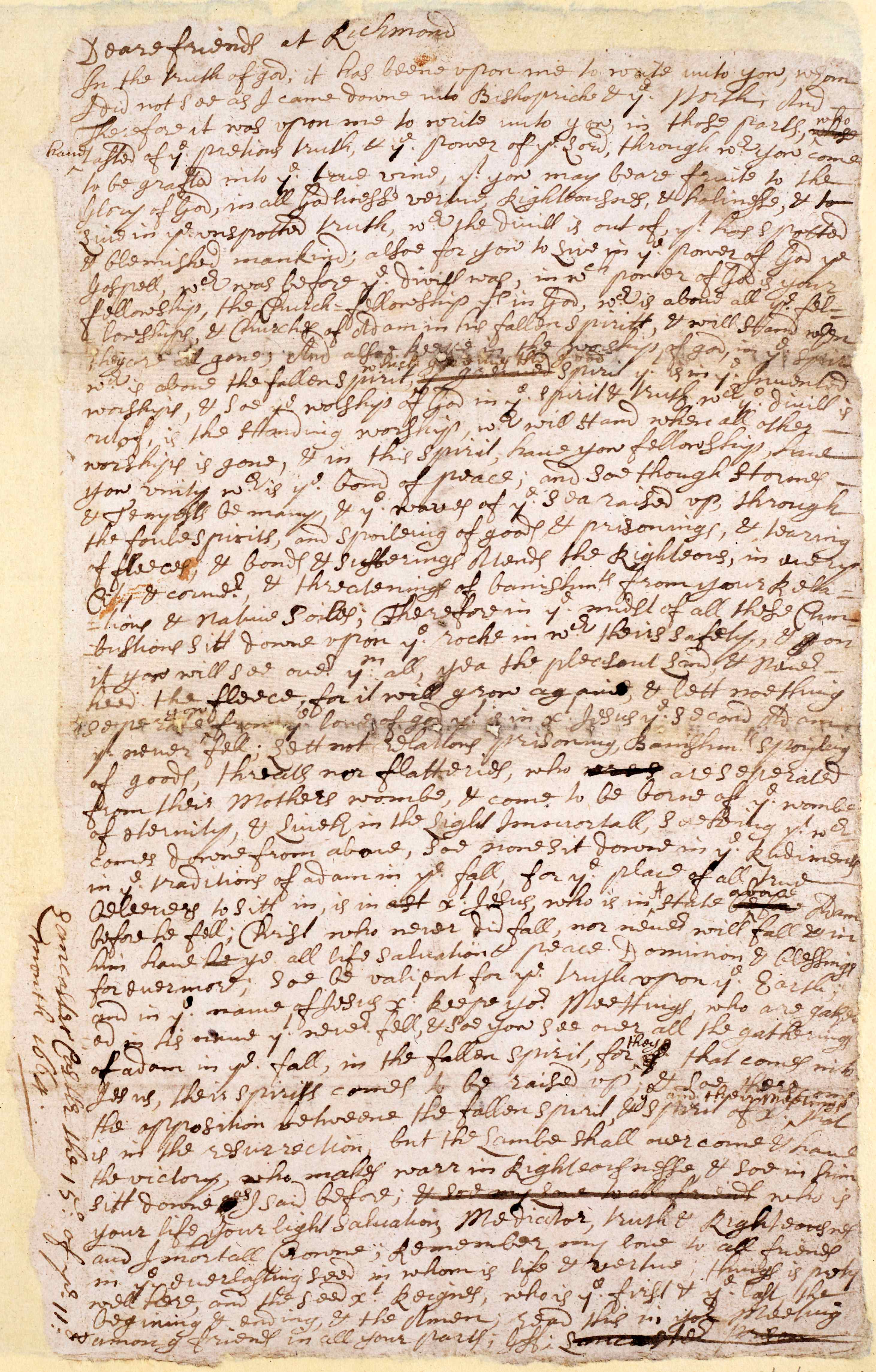 Epistle from George Fox to Friends of Richmond Monthly Meeting, Lancaster Castle, 15 January 1664 [R/Q/R 7/9]
