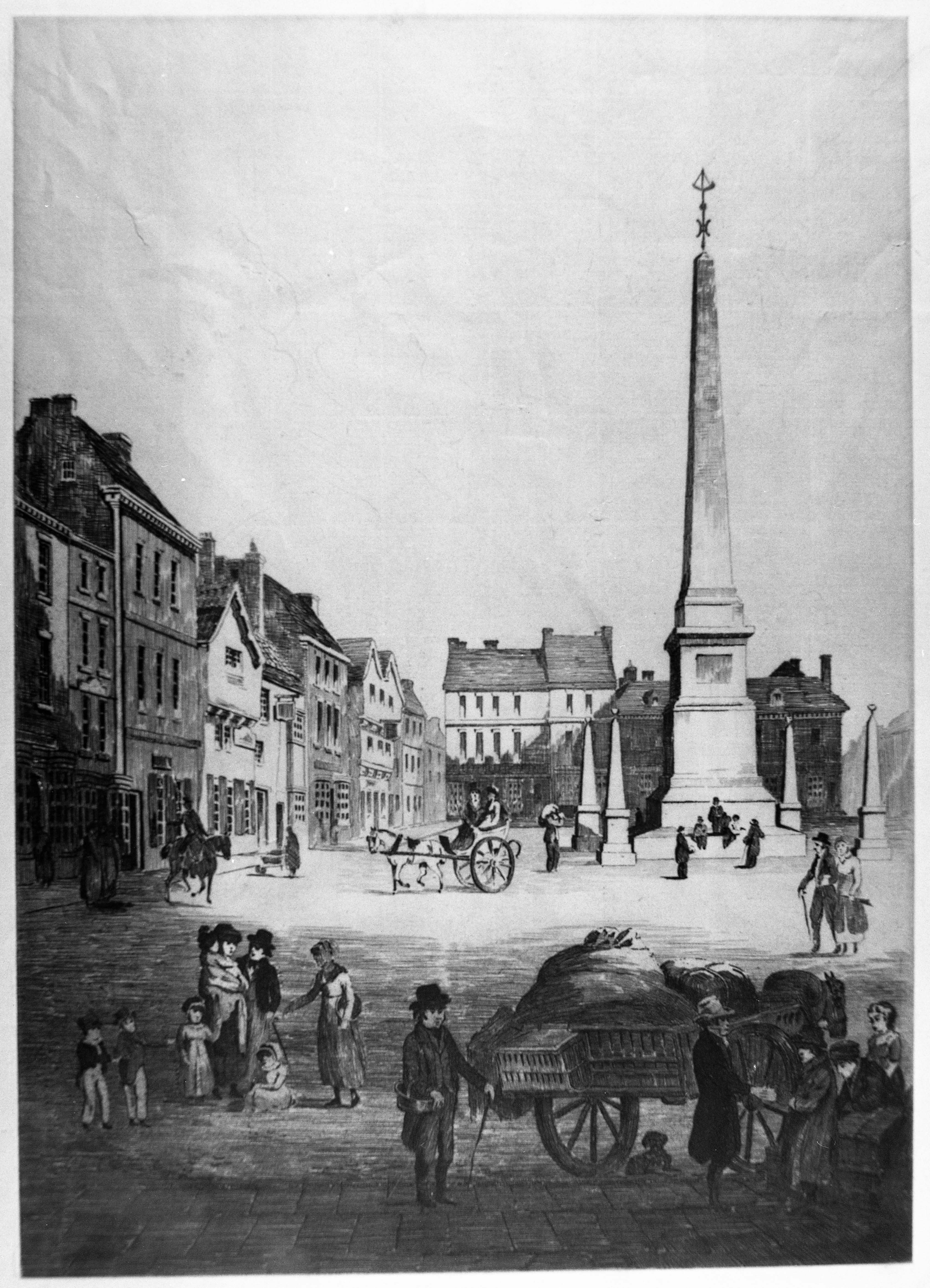 The cost of building the obelisk in 1702 was £484 11s 9d [the equivalent of just over £96,000 today]. Paving the Market Square cost an additional eighty pounds [the equivalent of c.£16,000]. The total cost of the works was therefore £564 11s 9d, £238 and 8 shillings of which was raised by public subscription, including £50 [the equivalent of c.£10,000] as a legacy from Alderman Gibson, £50 from the Archbishop of York and £20 from the Dean and Chapter of Ripon.