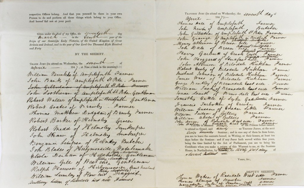 Further information about those who attended the Quarter Sessions can be found in our previous post: All Human Life: North Riding Quarter Sessions.