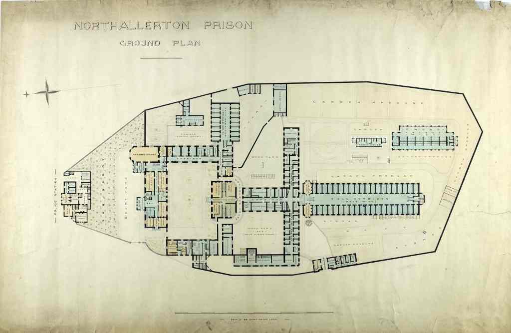 Northallerton House of Correction Gaoler Reports, and the ground plan from the mid-nineteenth century (see below), show that men and women were housed in separate wings, but there was no separate area for juveniles. The prison did employ a schoolmaster and had rooms for a schoolmistress.