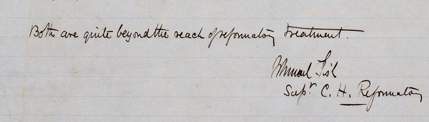 The best thing that can be done is to send the girl to the Reformatory School – if she is allowed to come back, there is nothing to save her from turning out to be a prostitute or a thief.”