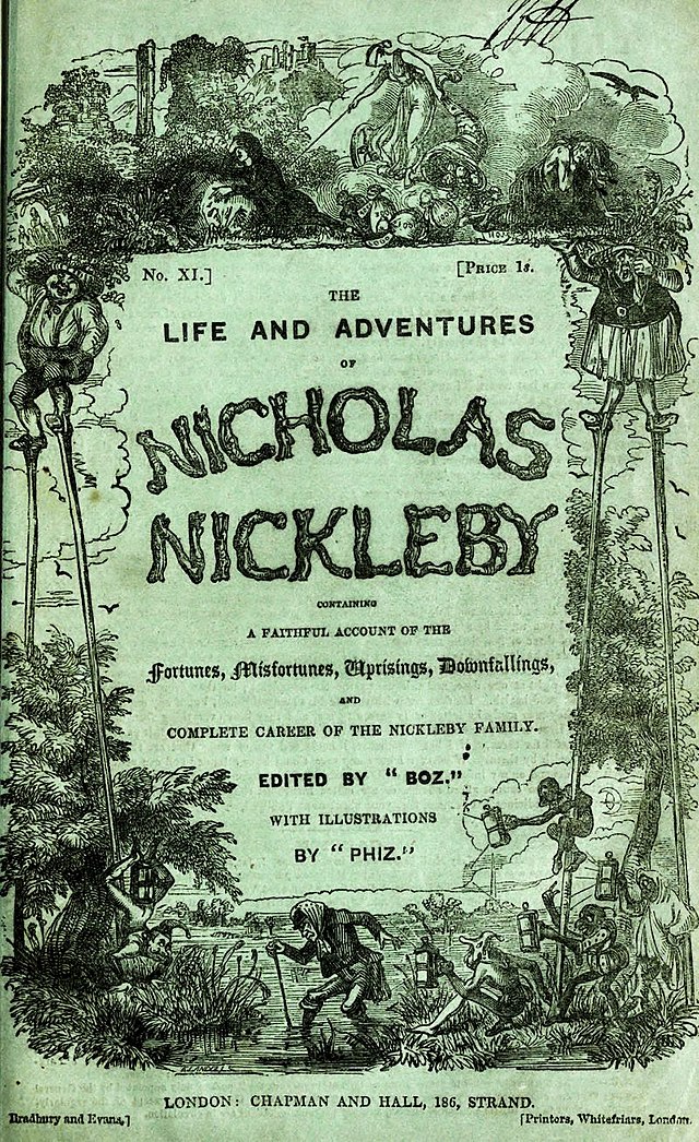 Cover of the 1st edition of Charles Dickens’ Nicholas Nickleby [public domain via Wikimedia Commons]