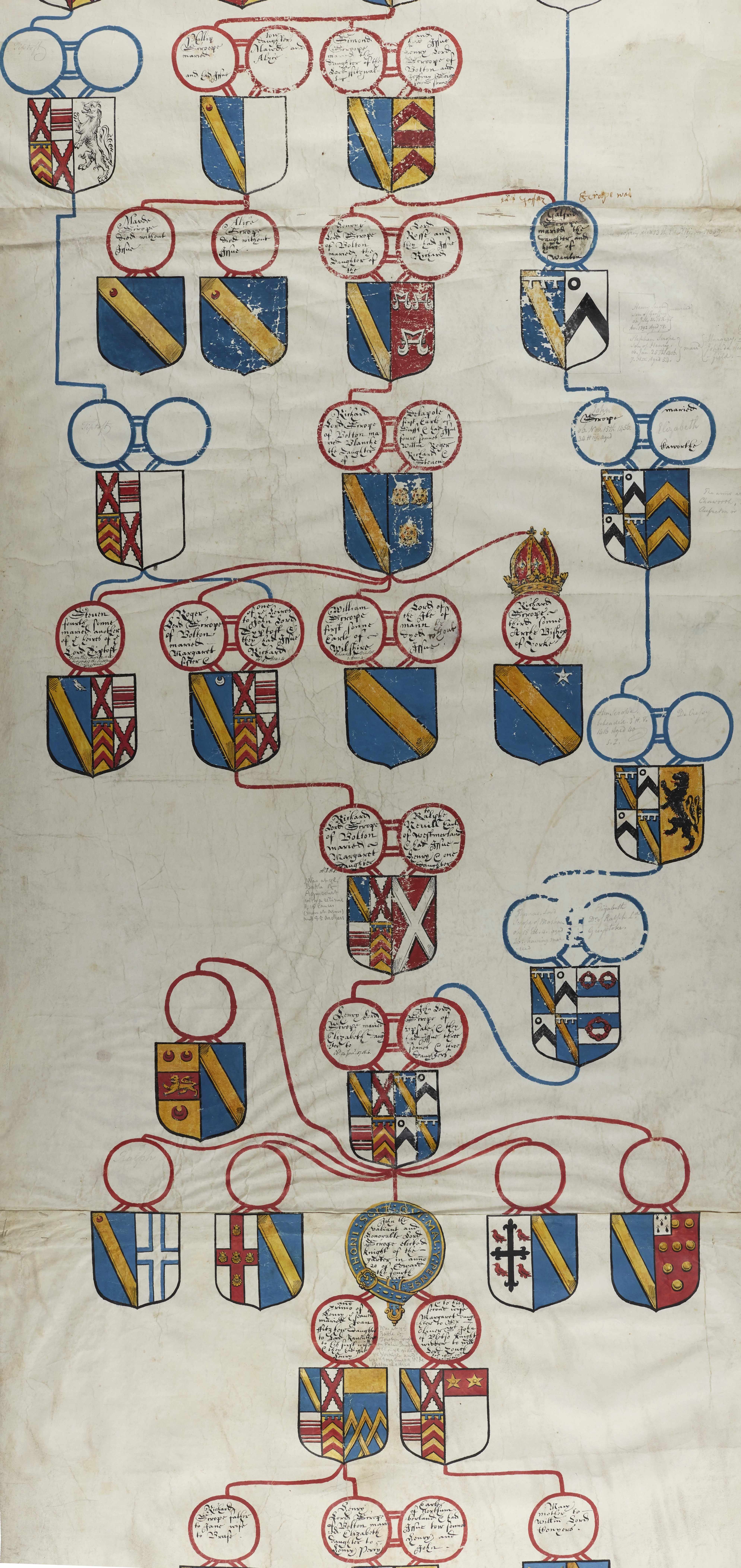 Section of the Scrope pedigree, c. 17th century, with later additions [ZPT 25/1]
