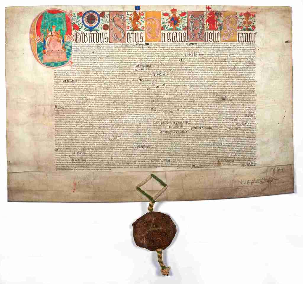 Royal charters were detailed legal documents that record a variety of grants in perpetuity (forever), including lands, honours and privileges. Charters may have been issued to make grants of lands and rights to lands; establish liberties to hold town markets; bestow peerages; create private corporations including towns and cities. Language used is very solemn, and the Great Seal will be attached at the foot of the document (pendent).