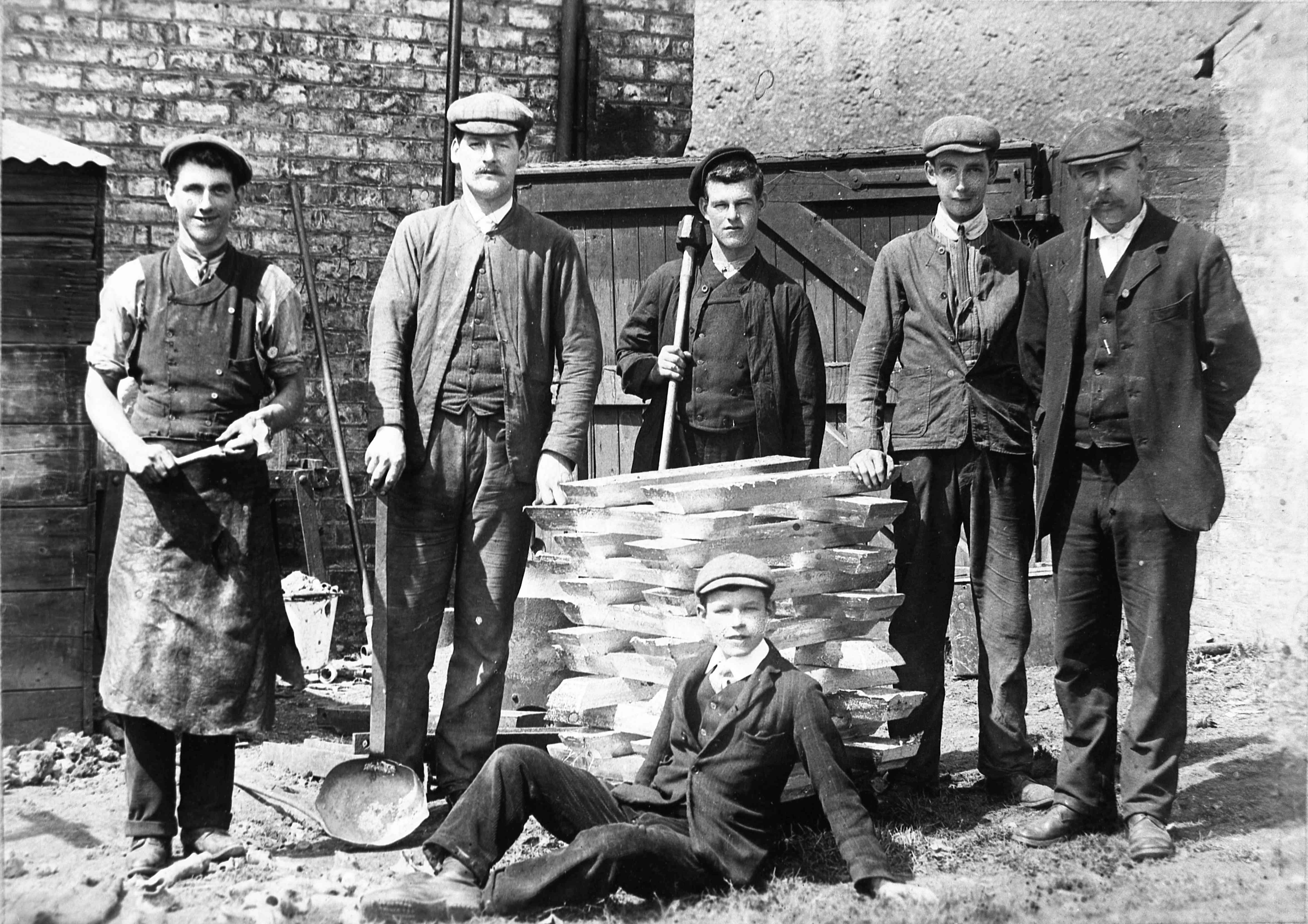 - Left: Benson family at the lead works, King Street, Ripon with lead ingots known as ‘pigs’ [C6809]