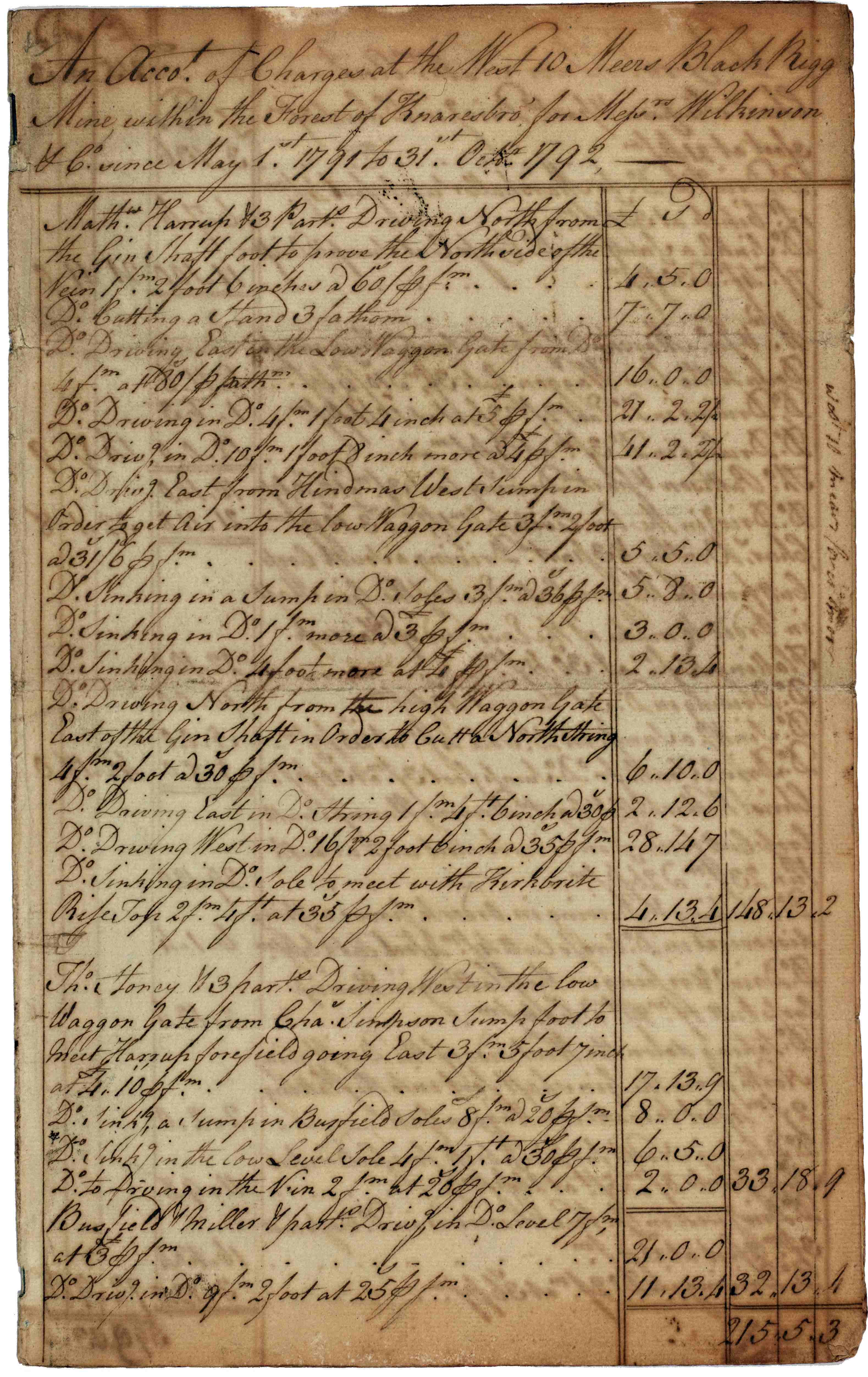 - Left: Account of charges at West 10 Meers Black Rigg Mine, near Greenhow Hill, in the Forest of Knaresborough, for Wilkinson & Co, May 1791-Oct 1792 [Z.1526]