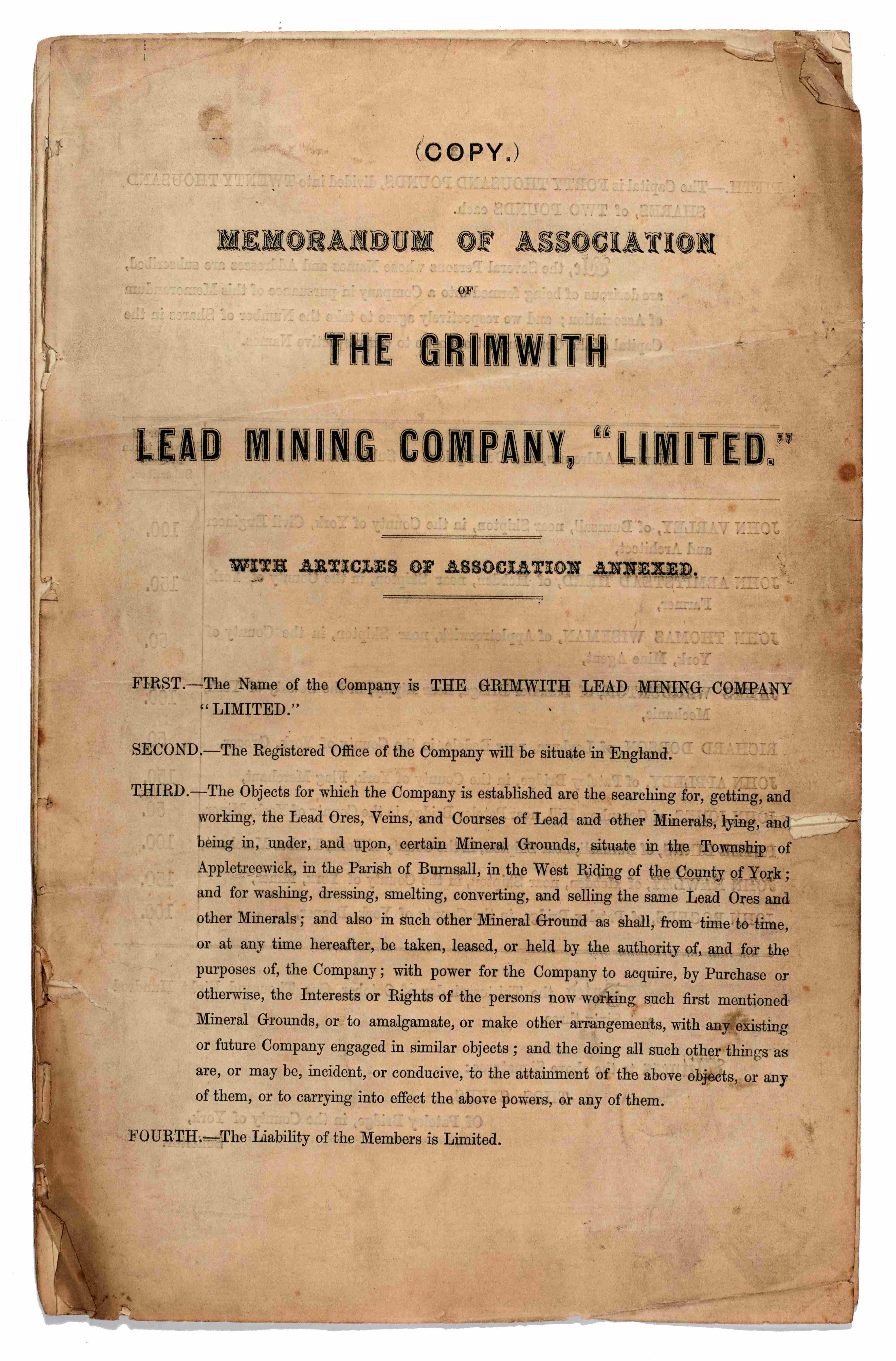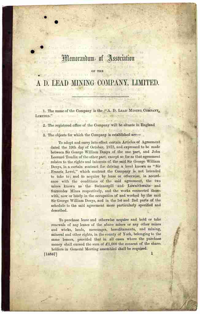 Memorandum of Association of the A.D. Lead Mining Company, 1874 [Z.1576]