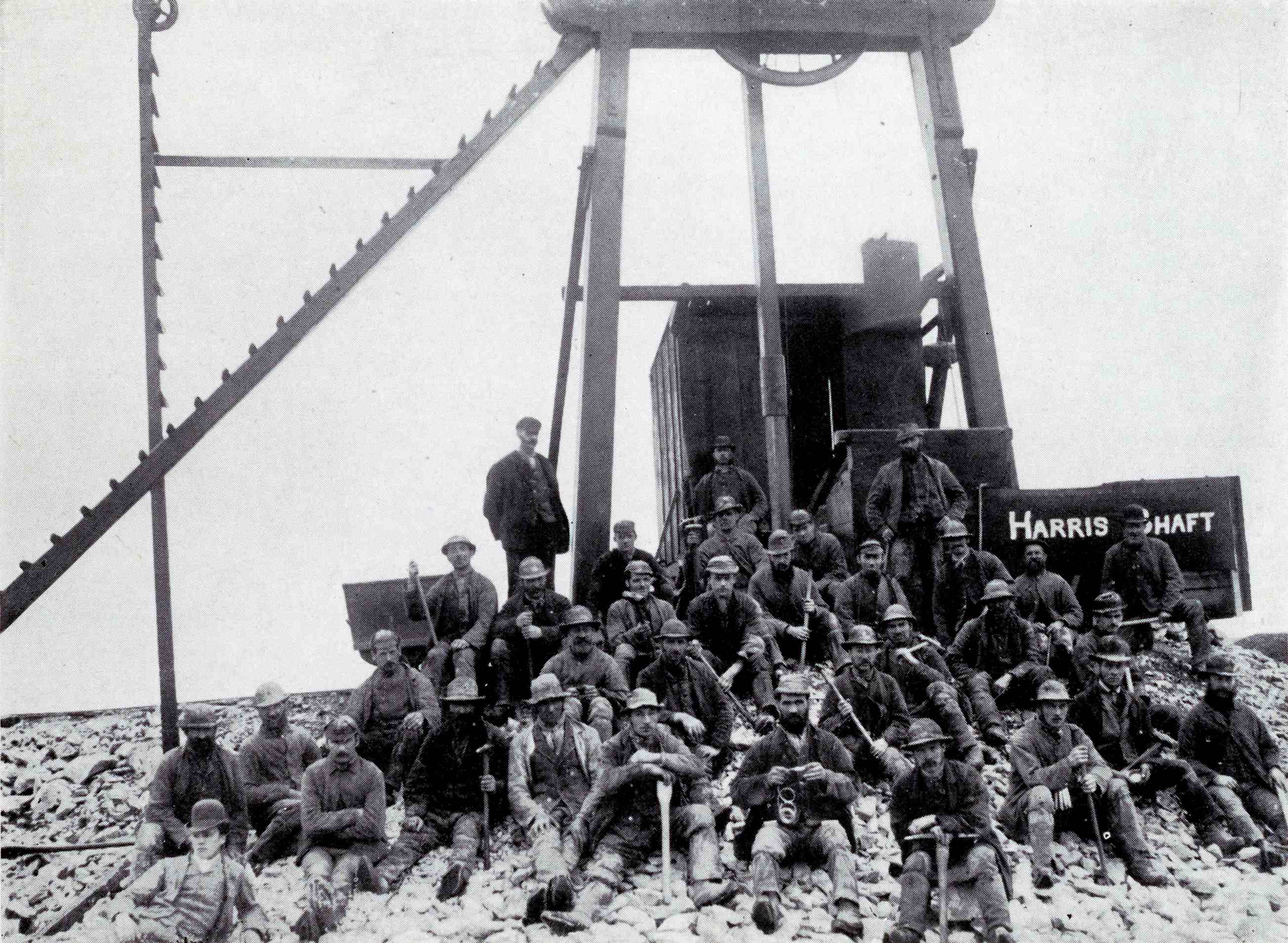 - Right: Miners at the head of Harris Shaft, Greenhow Hill, c.1890 [Z.1621]. Harris Shaft was worked between 1887 and 1895.