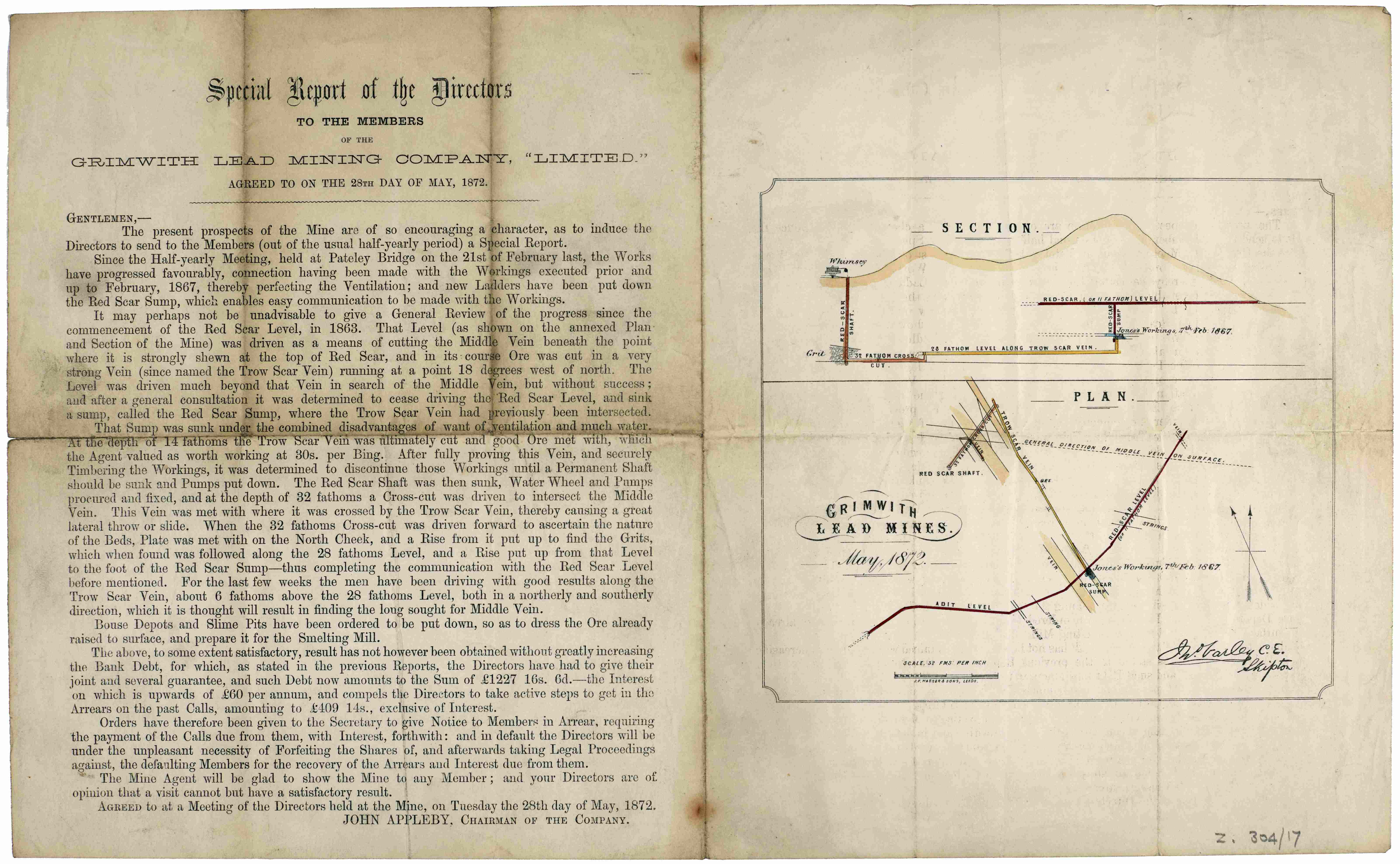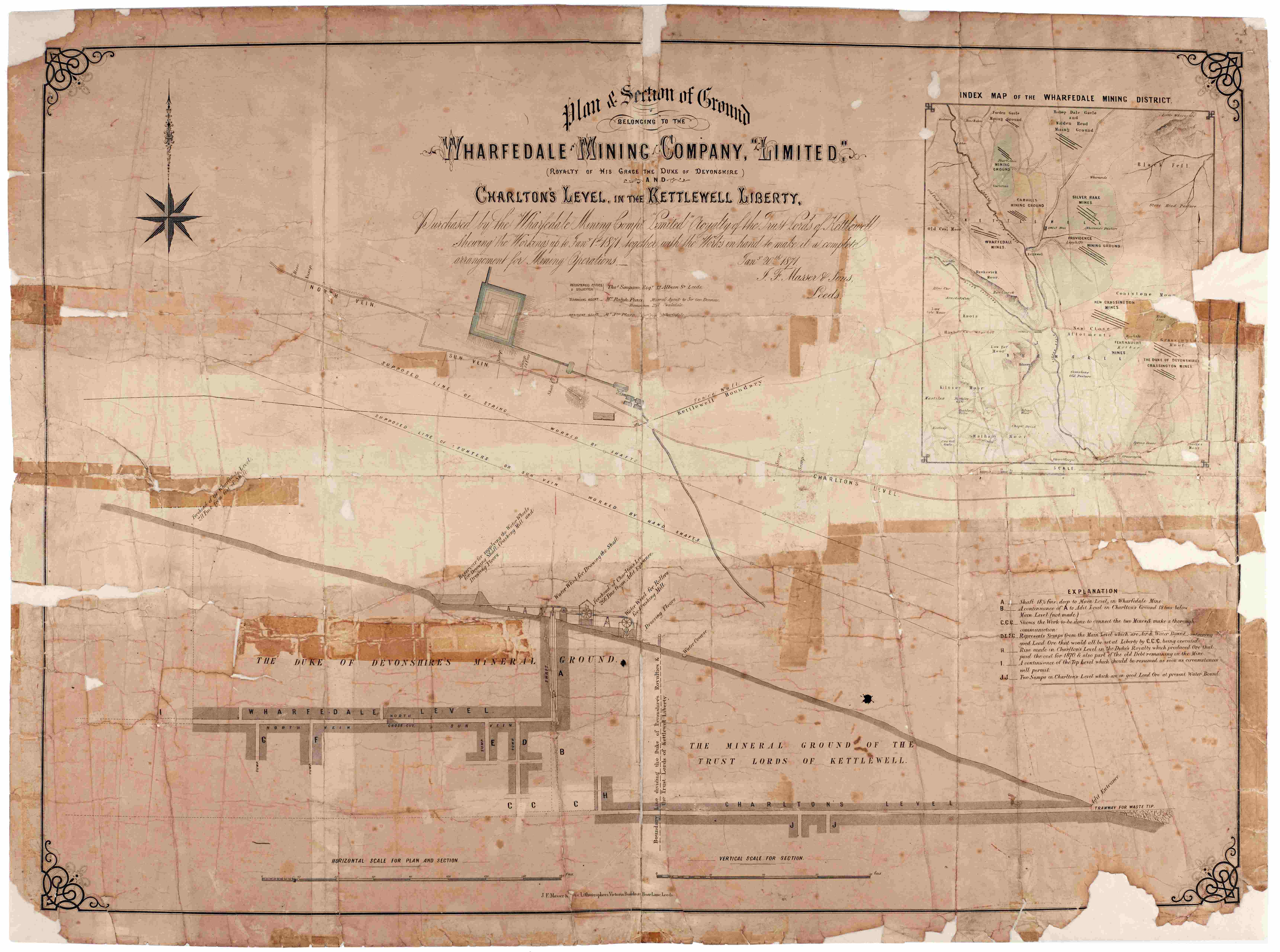 - Right: Plan of ground belonging to Wharfedale Mining Company Limited, 1871 [ZQJ]